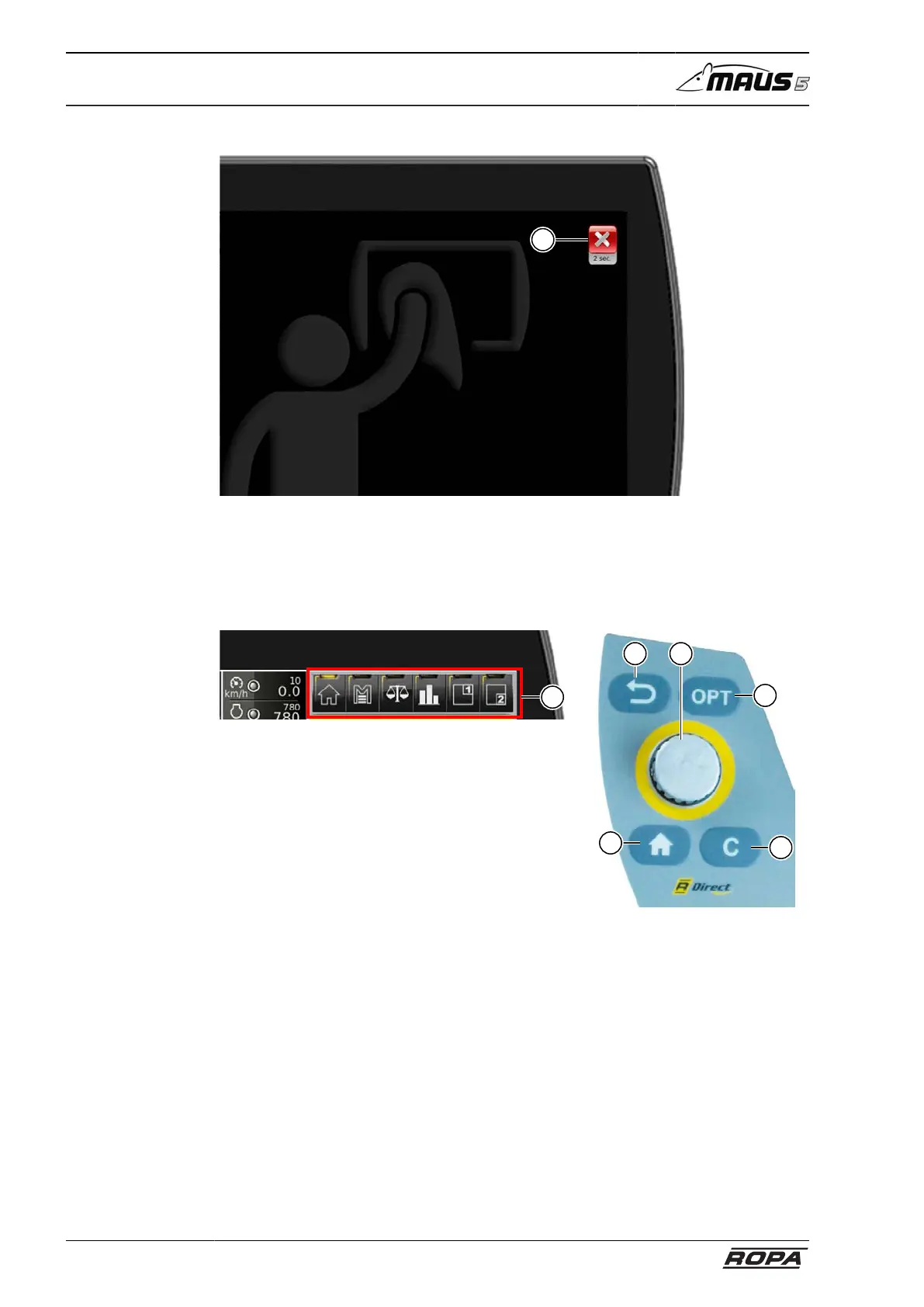 The R-Direct (5) (YELLOW screen and operating panel) allows the driver to access