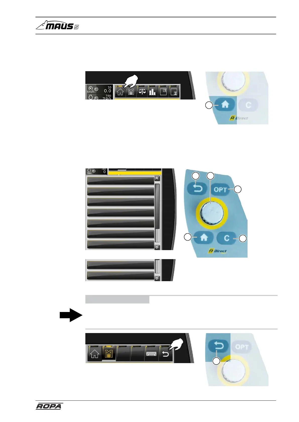 The key RETURN (6) is always available in the menu area as well as on the R-Direct