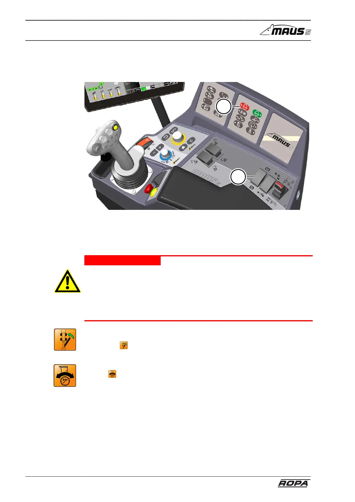 If the supply pressure in hydrostatic drive is too low (15 bar) the orange warning icon