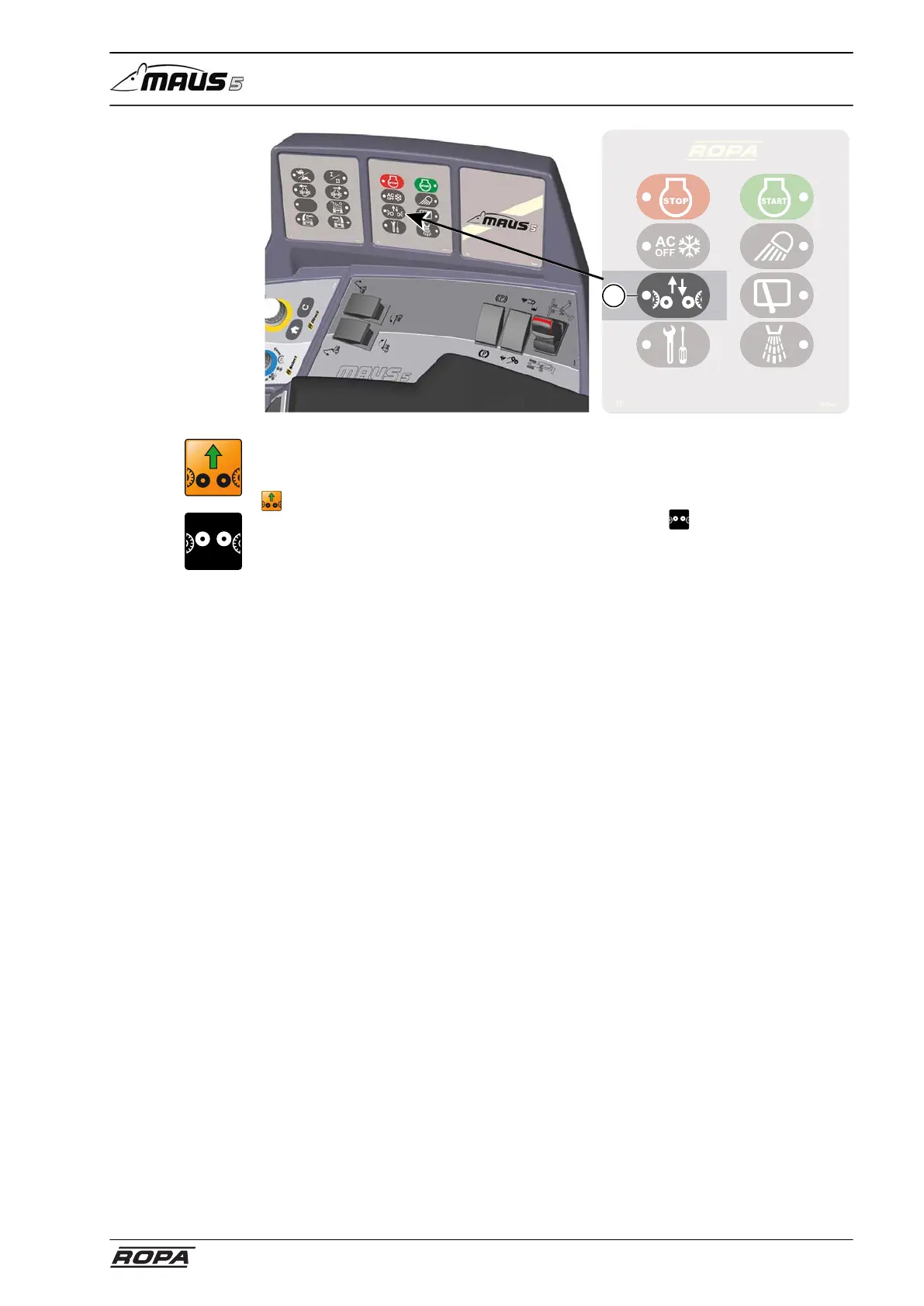 . The additional axles can be raised by pressing the key (5). The LED turns off once