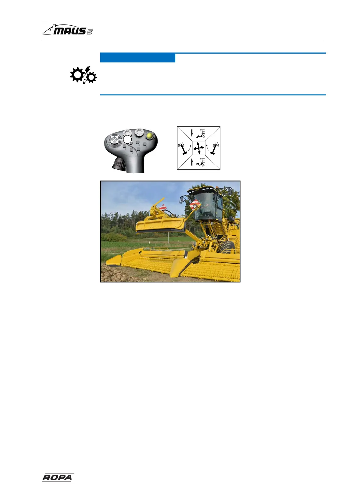 Push the mini joystick (1) forward and lower the complete pickup to the ground. This