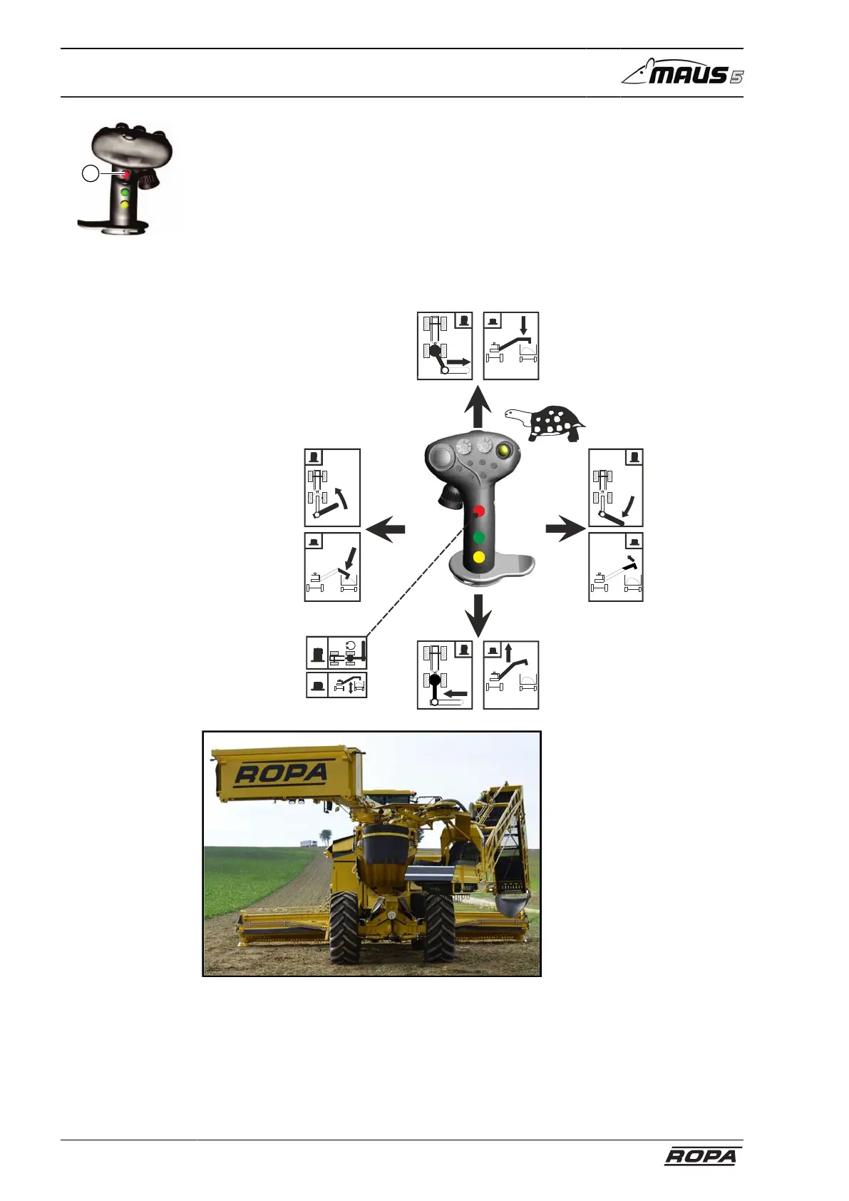 – Press and hold the multi-key (11) on the right joystick, simultaneously, lightly pull