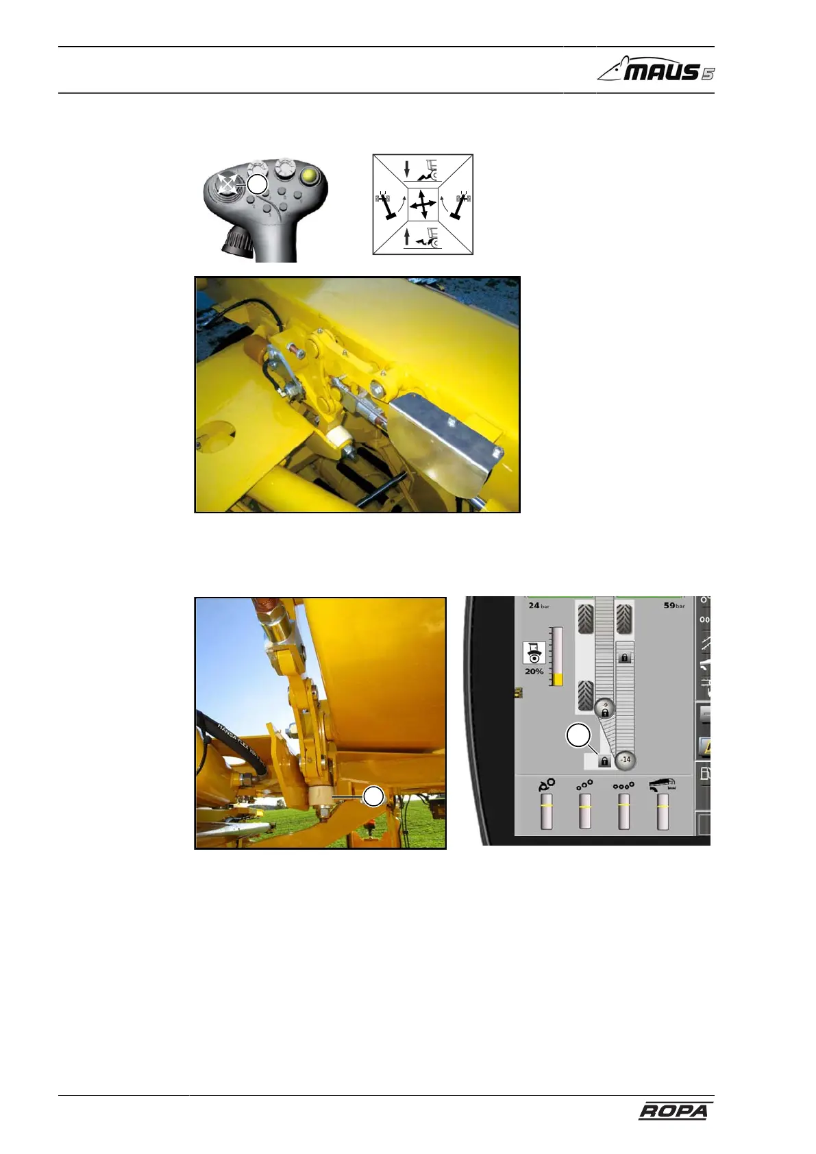 – Close the counterweight arm lock up to the end-stop. To do so, select the function