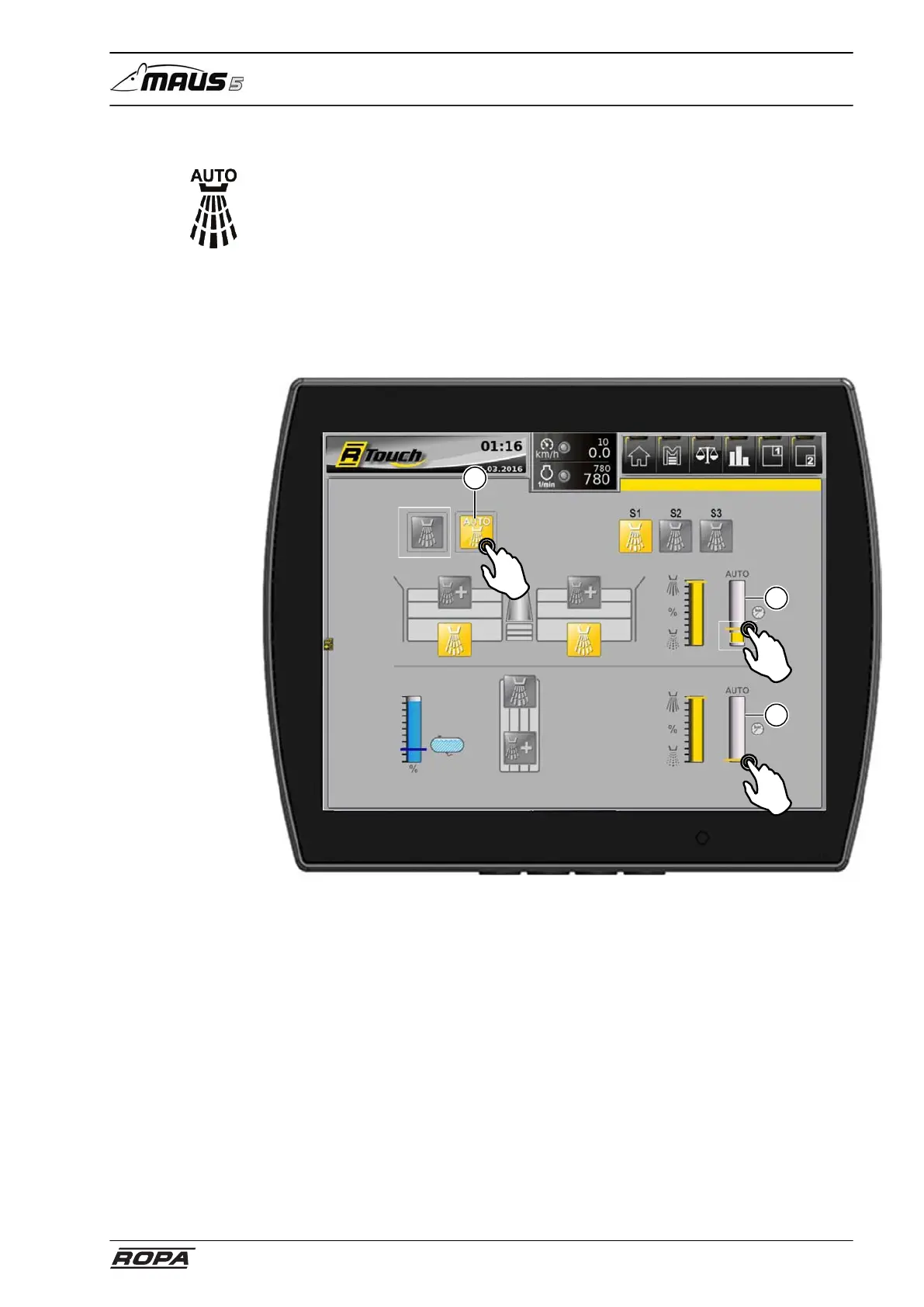 Touch the switch panel (12) to activate pressure control.