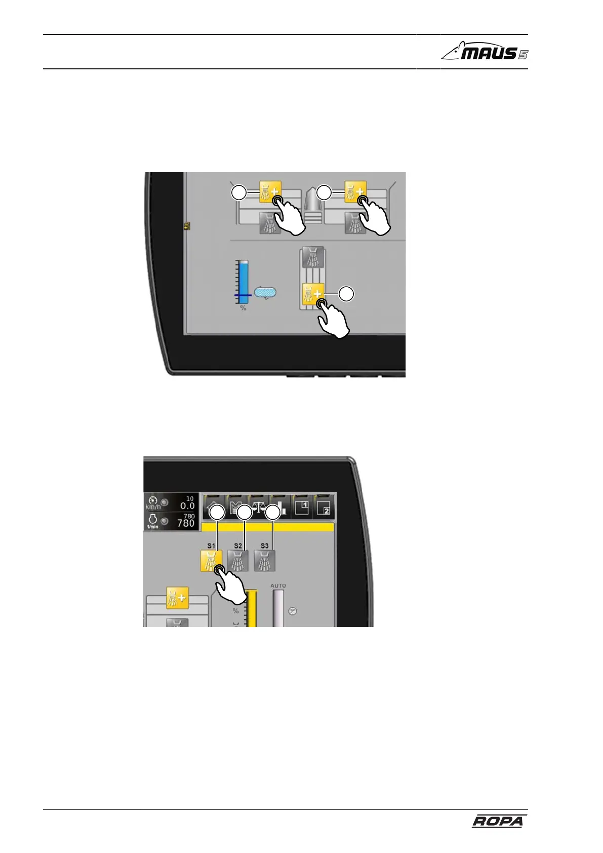 spray nozzles. These water valves are switched on and off individually with the "+"