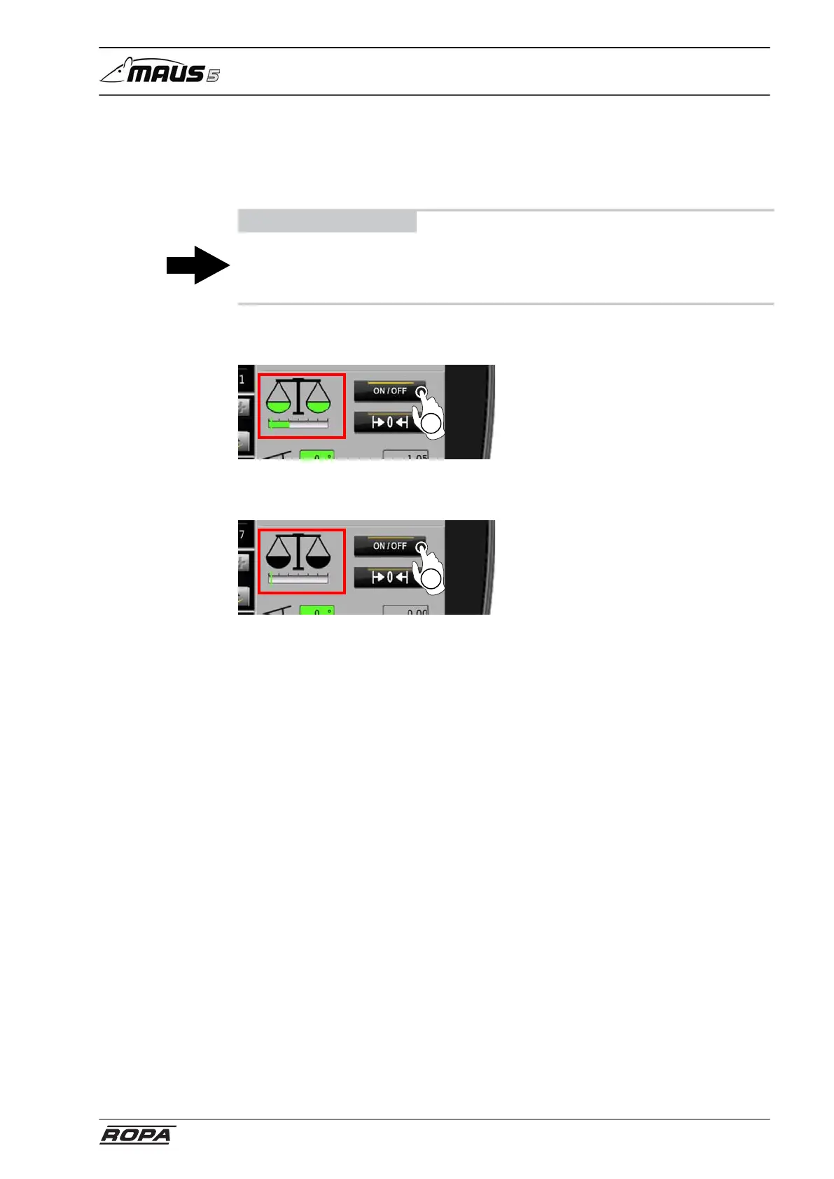 To start weighing touch the switch panel