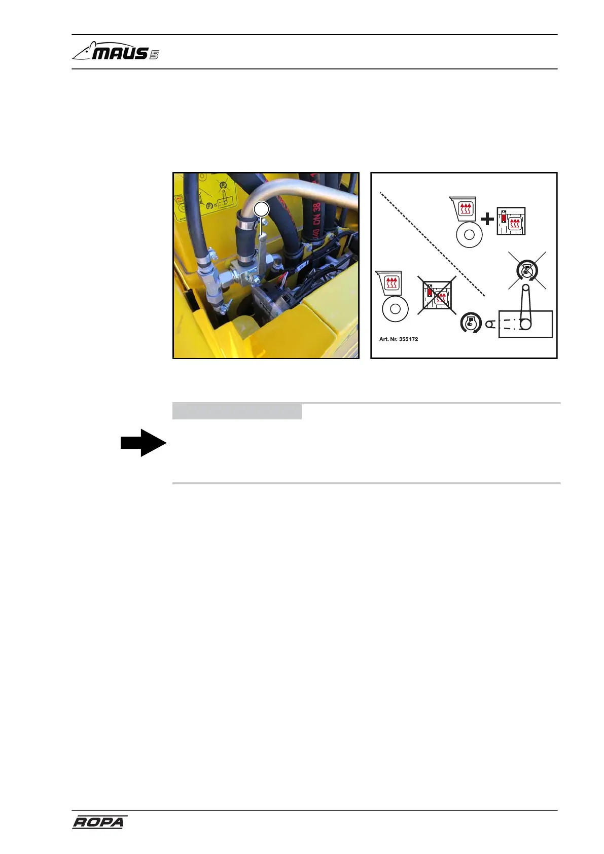 Turn the ball valve lever (1) on the outside wall of the hydraulic oil tank upwards.