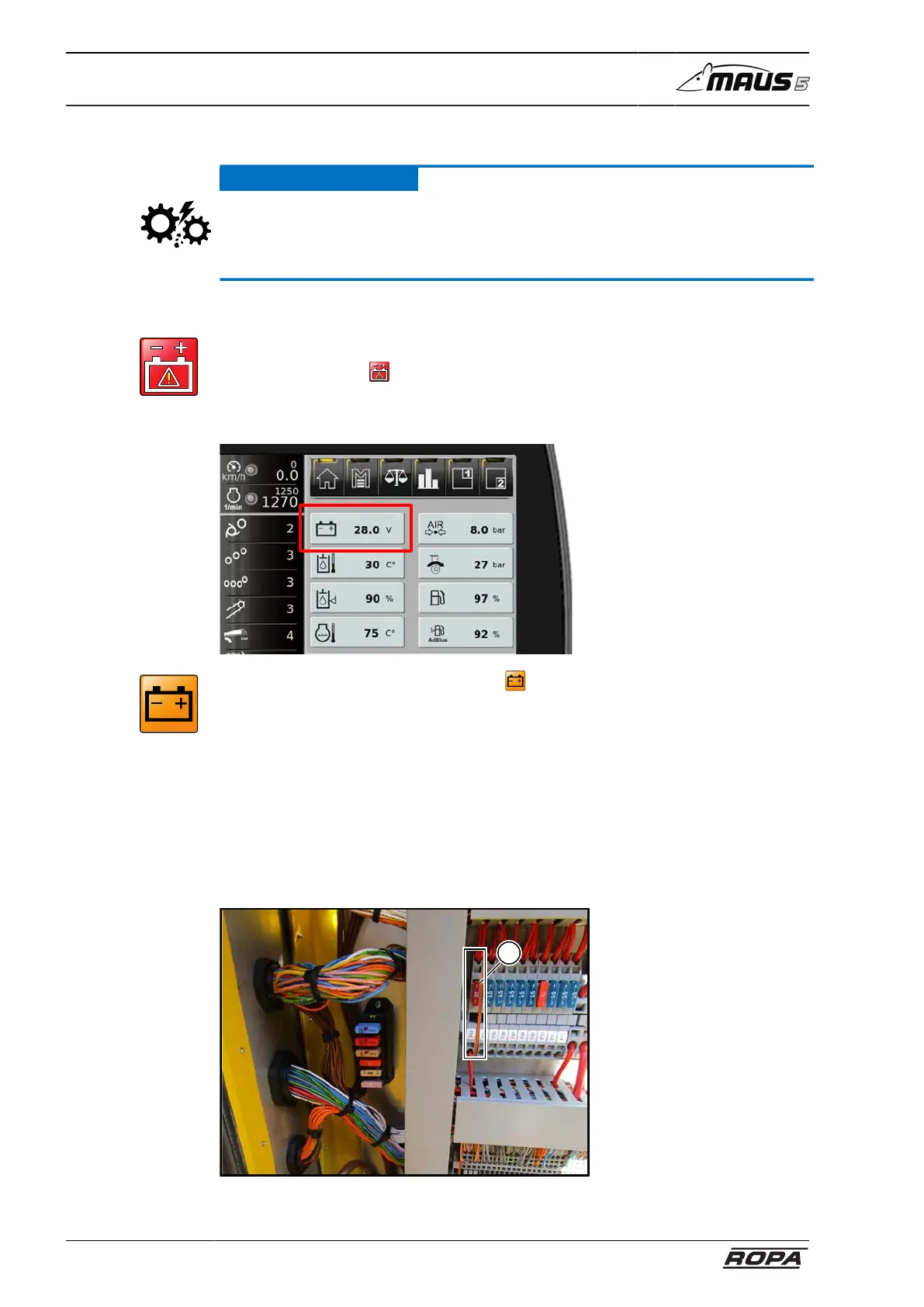 then the warning icon is displayed on the R-Touch. The battery voltage may not