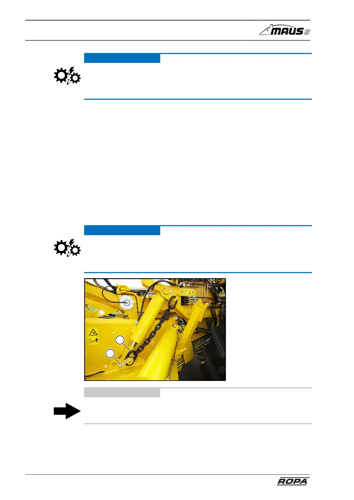 parking the machine, always fasten the safety chains (2) to the bolts on the left and