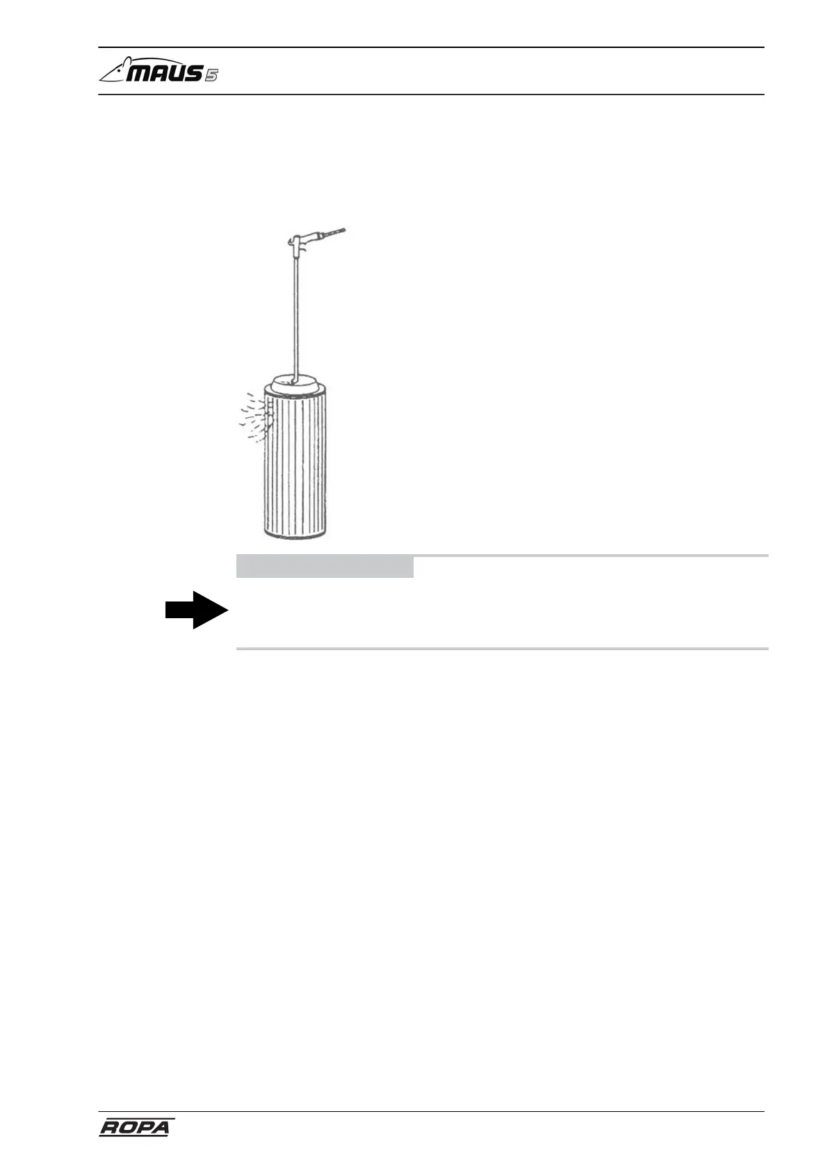 – Set the pressure reducer to max. 5 bar and blow out the filter cartridge so long