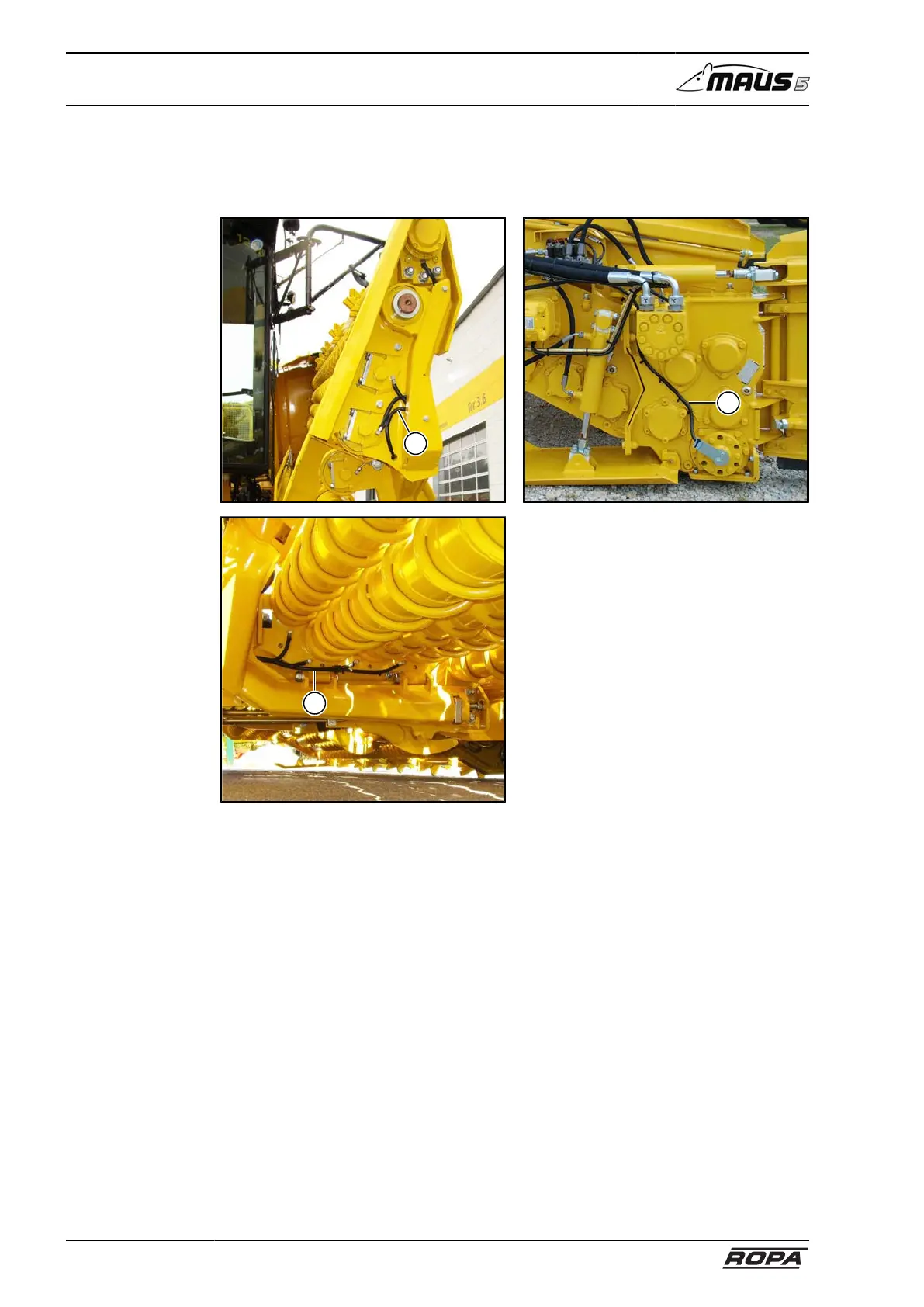 Check all lines (1) of the central lubrication system that lead to the rollers every day