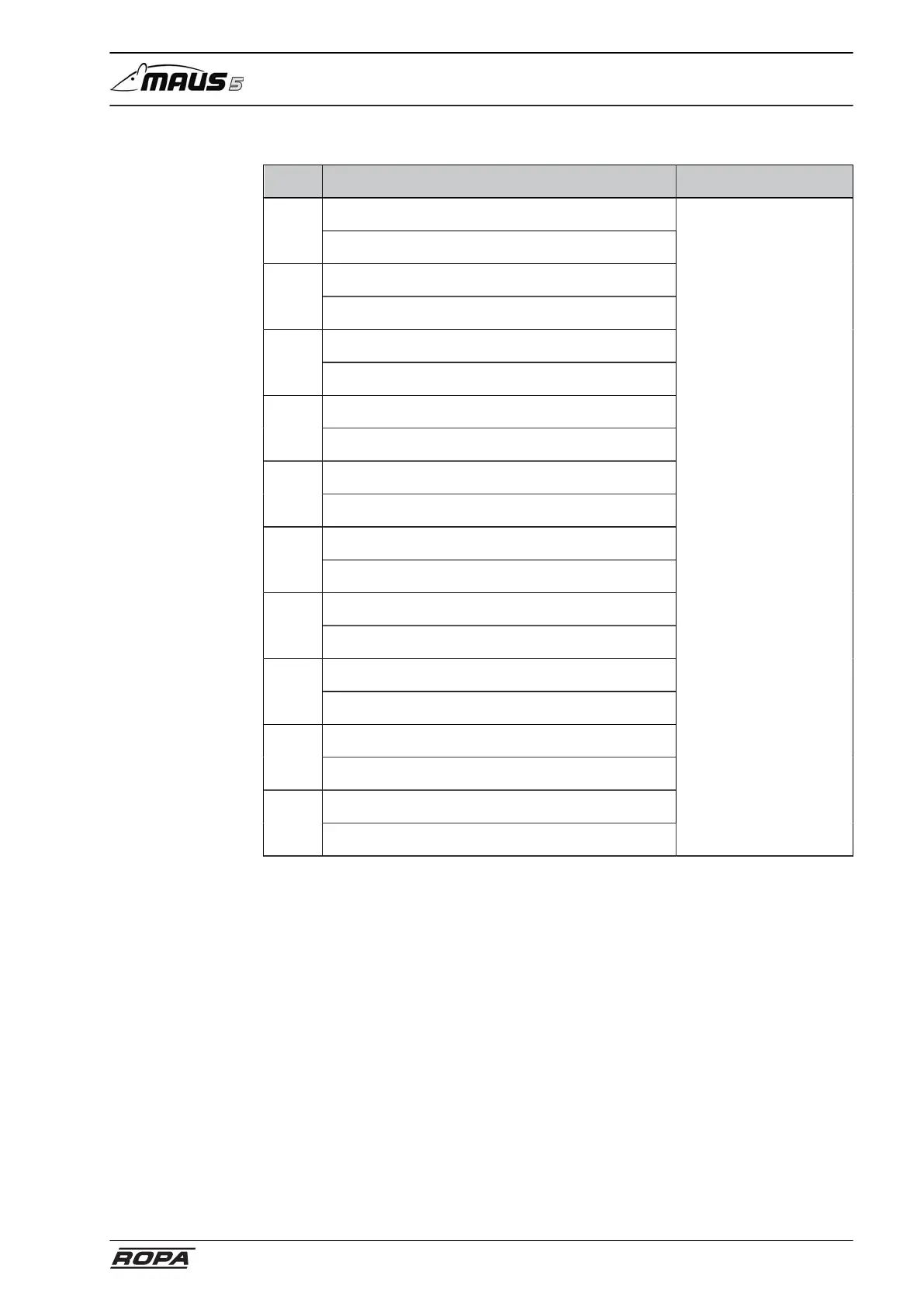No. Function Pos. in the machine