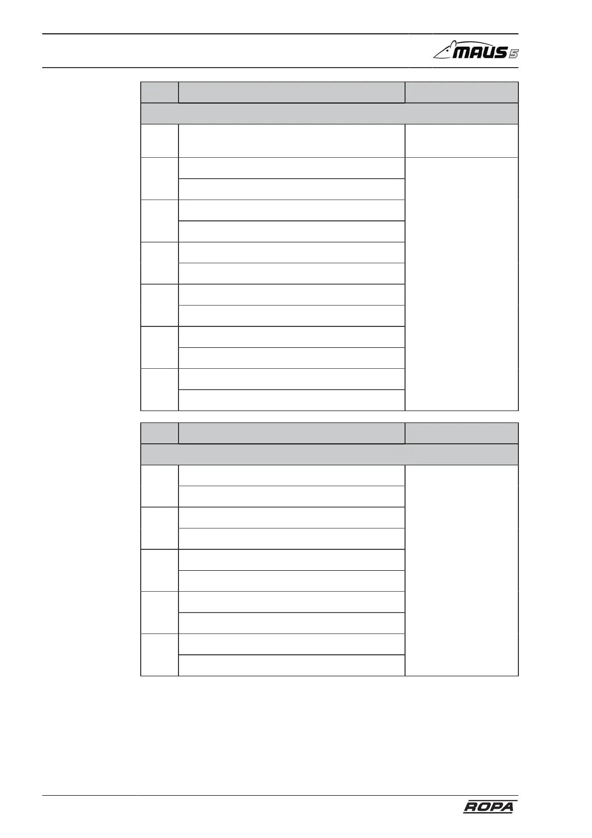 No. Function Pos. in the machine