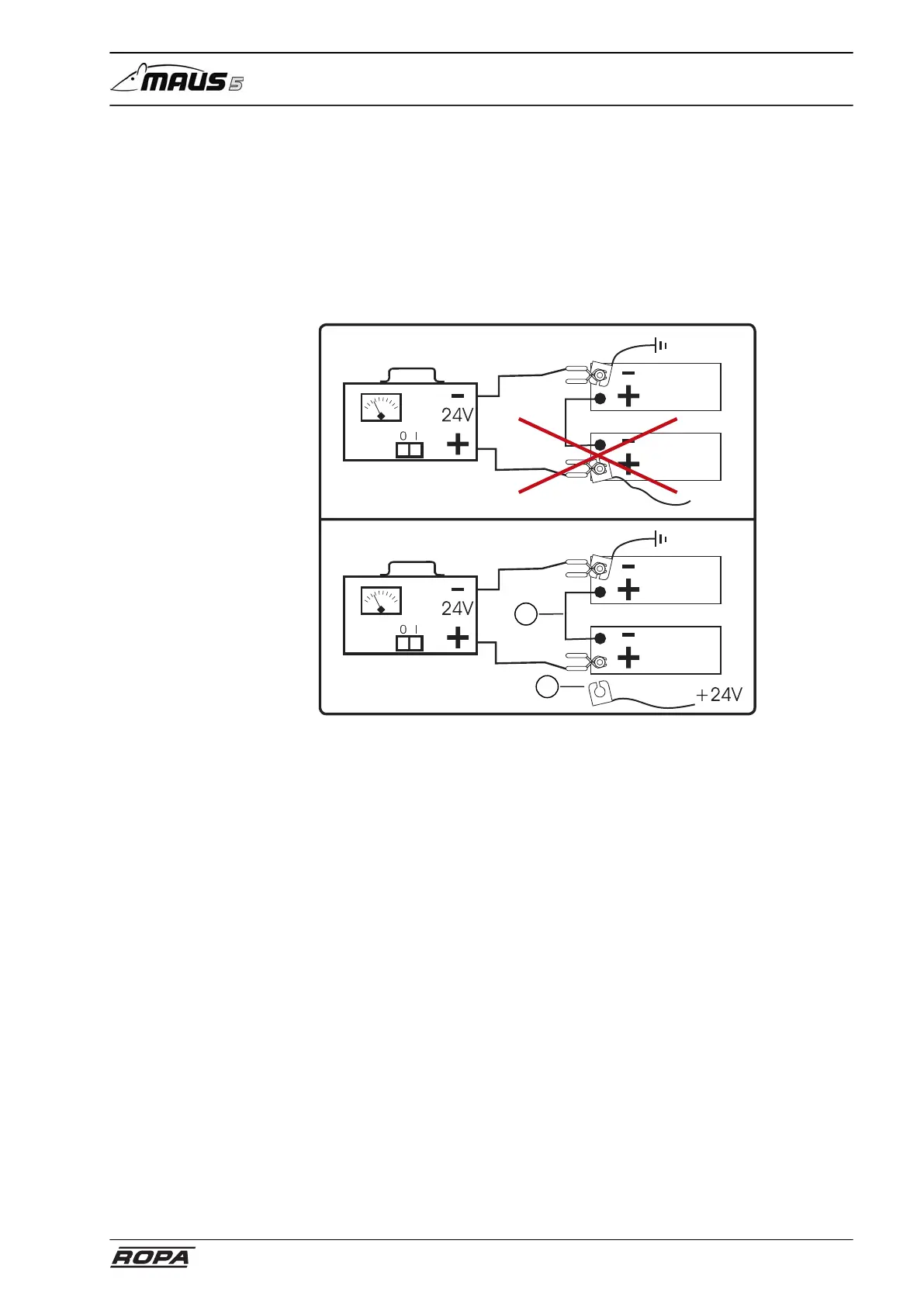 Generally, for charging the batteries, the plus terminal (2) must be disconnected and