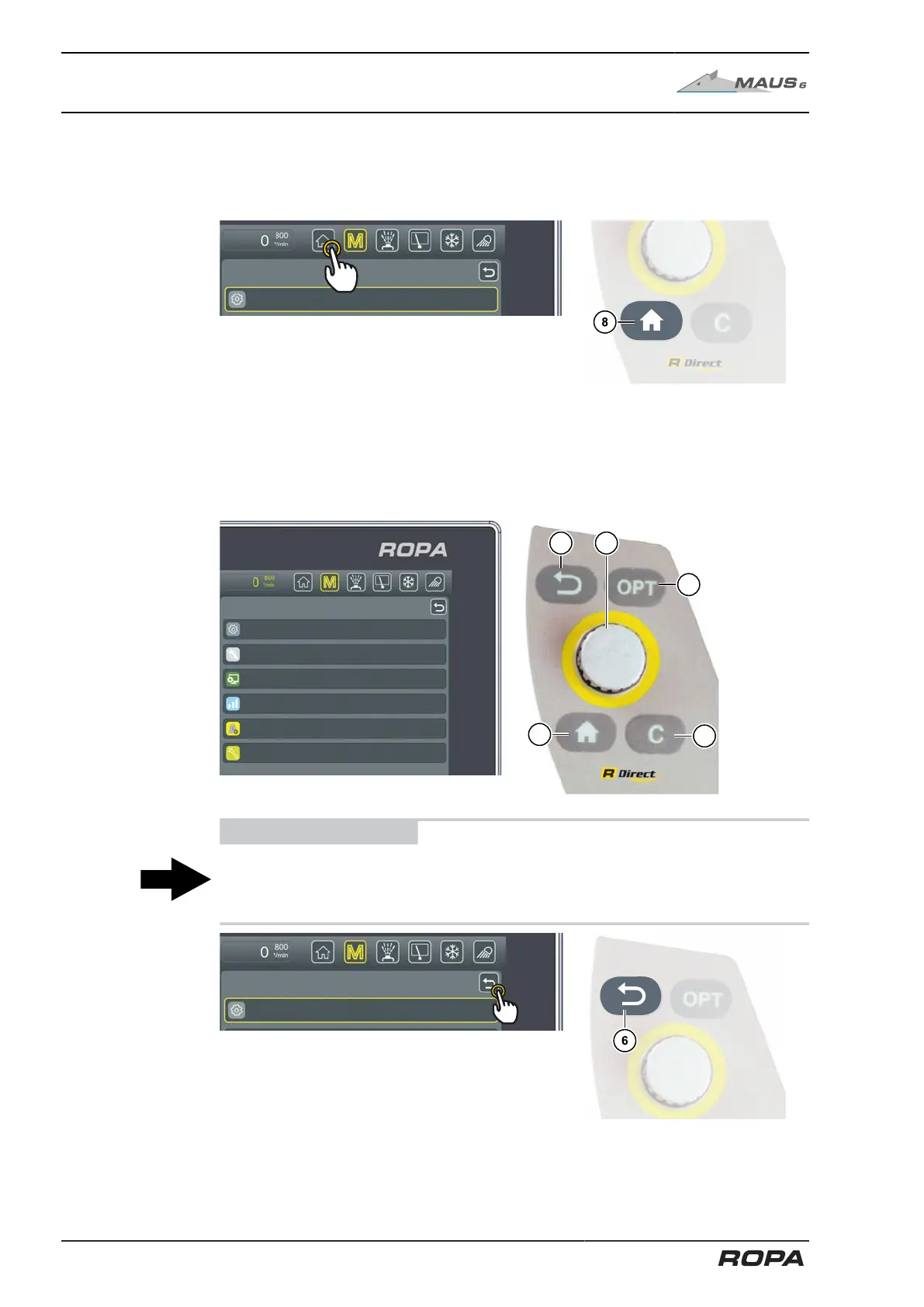 The RETURN key (6) is always available in the menu area as well as on the R-Direct