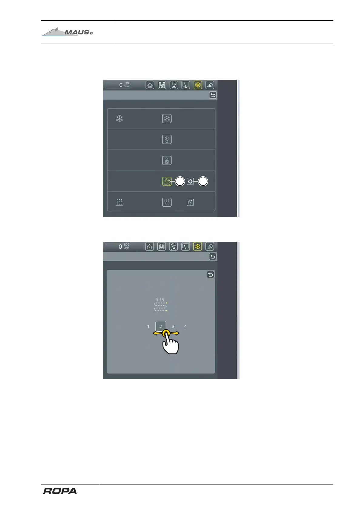 By pressing the screen button (8), you open a menu for setting the stage of the under-