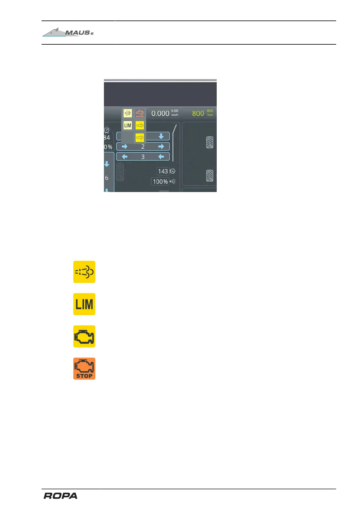 STOP engine warning light, shut down diesel engine (performance reduced).
