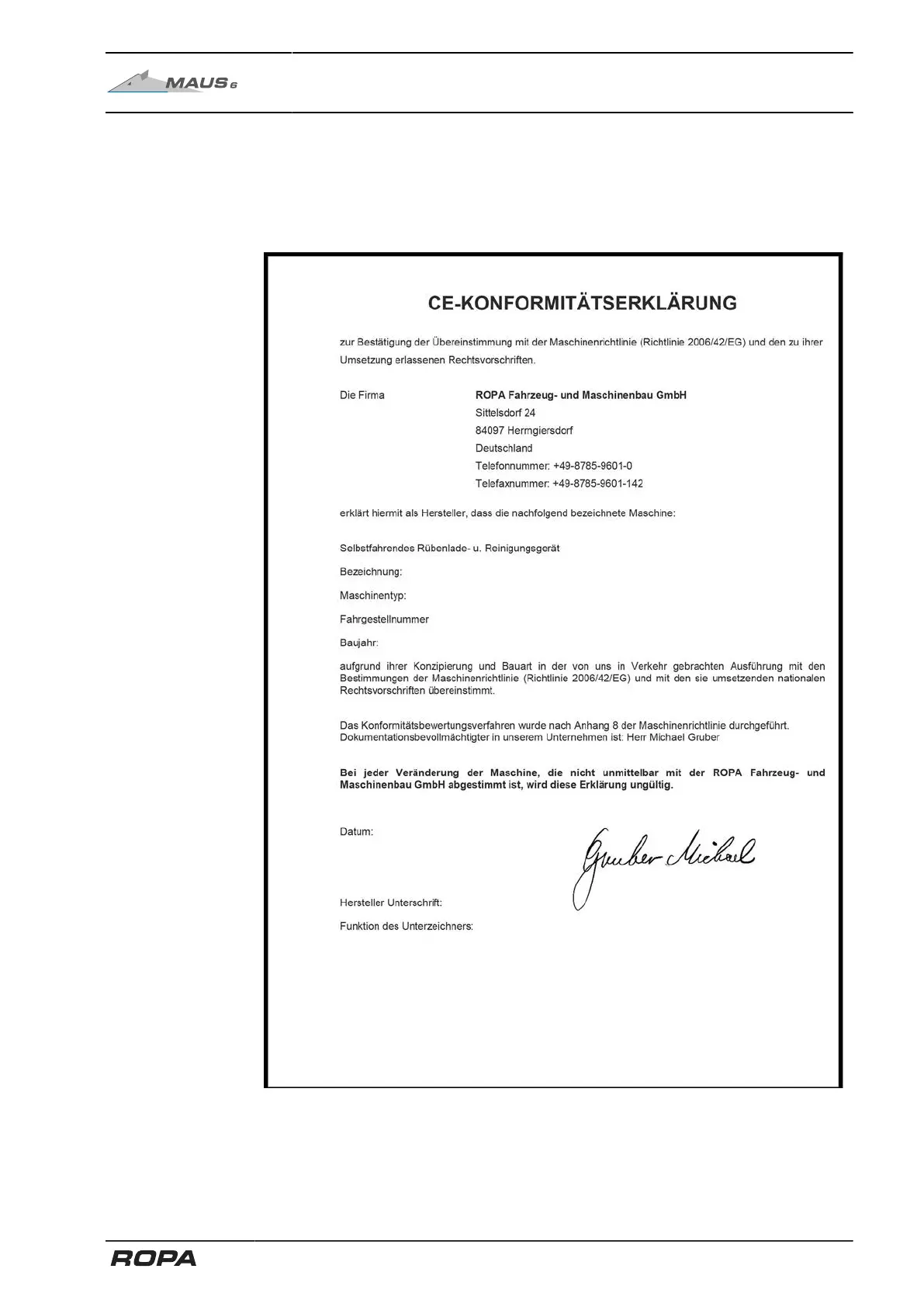 The Declaration of Conformity belongs to separately provided documents and is
