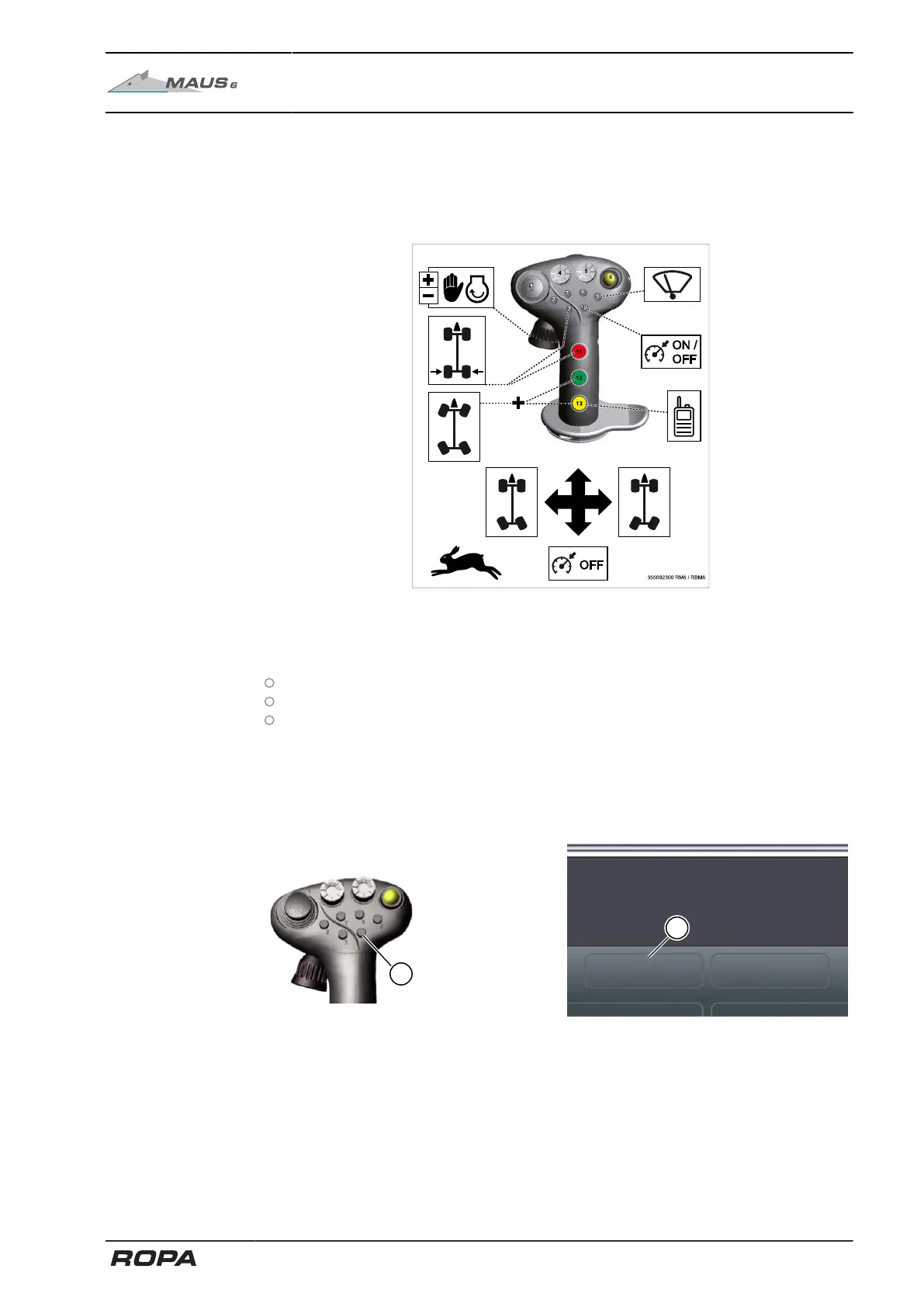– Press the key (10) on the right joystick. The driving speed indicator on the R-Touch