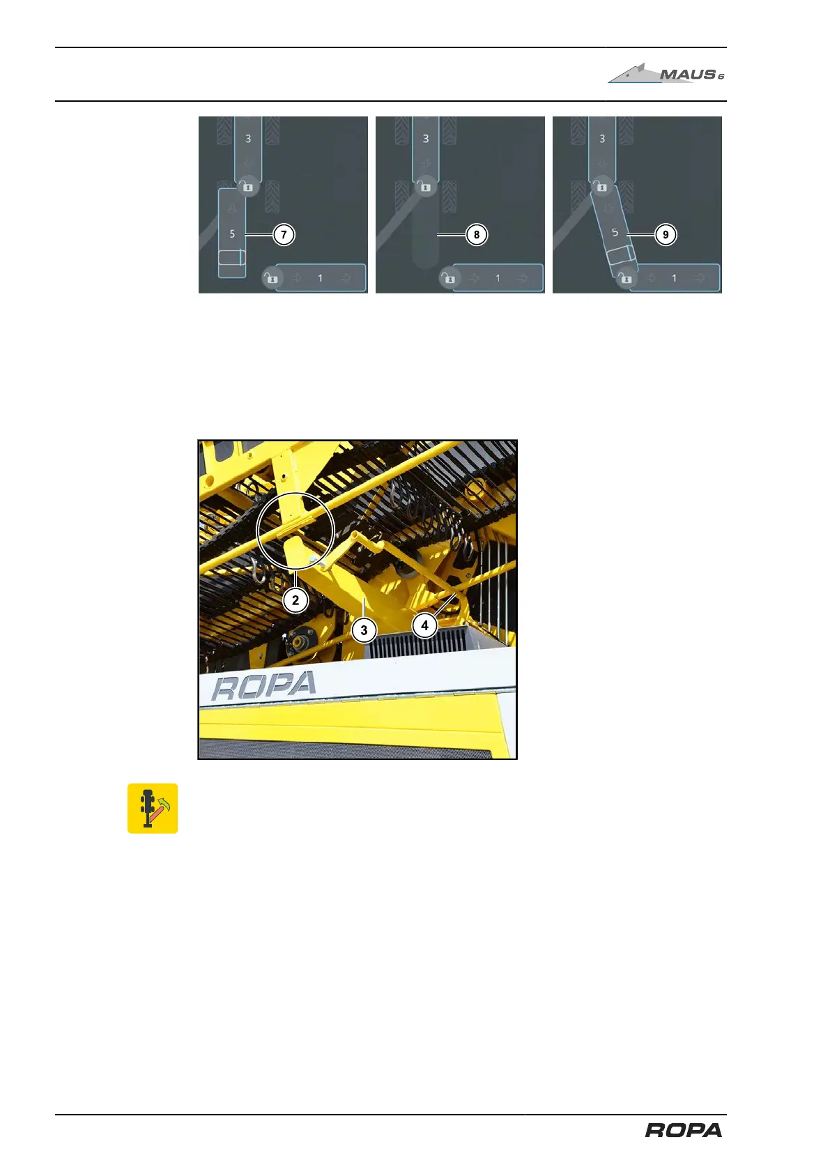 Manually, lower the truck conveyor 5-10 cm (2) over the transport support (3) and turn