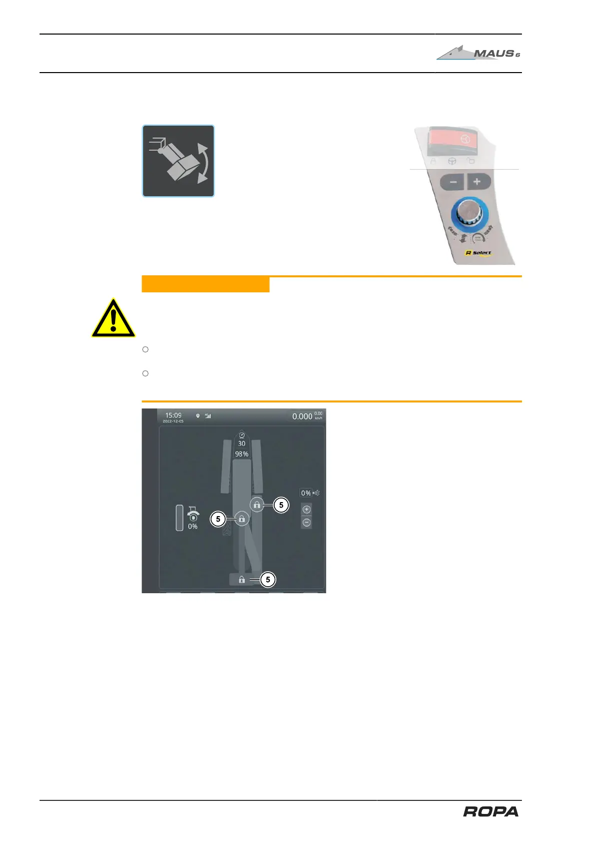 – Lower the counterweight completely to the end-stop. To do so, select the function