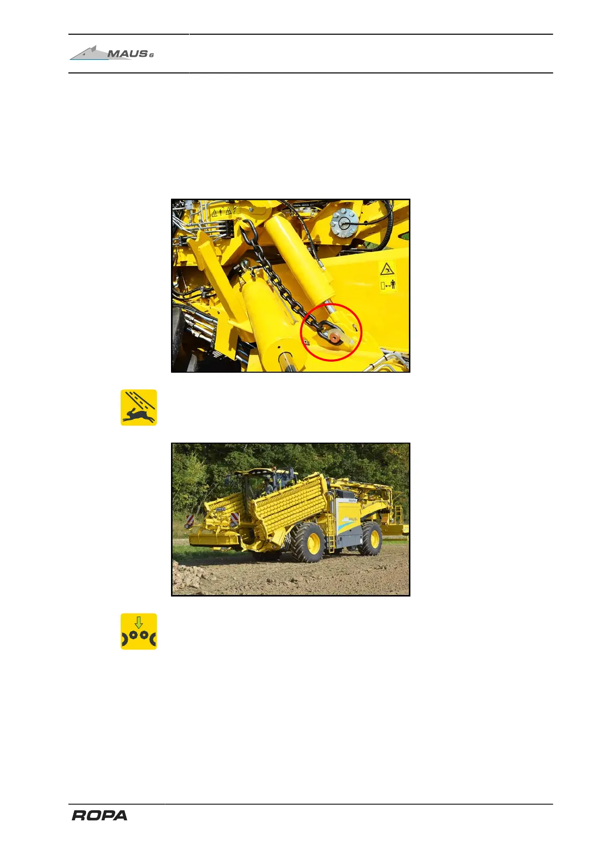 and are leaving the machine. In case of a malfunction of the hydraulic system, the
