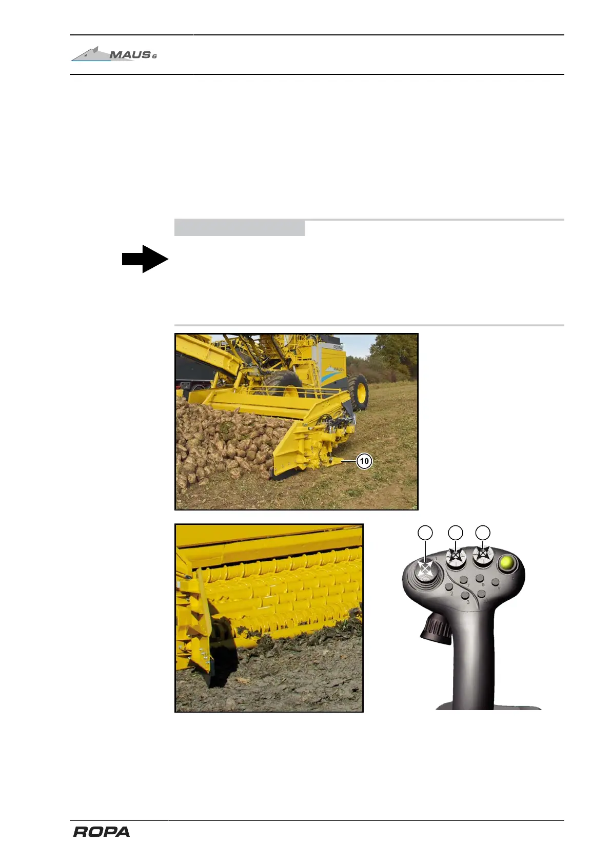 The mini joystick (1) on the right joystick is used to set the height of the pickup central