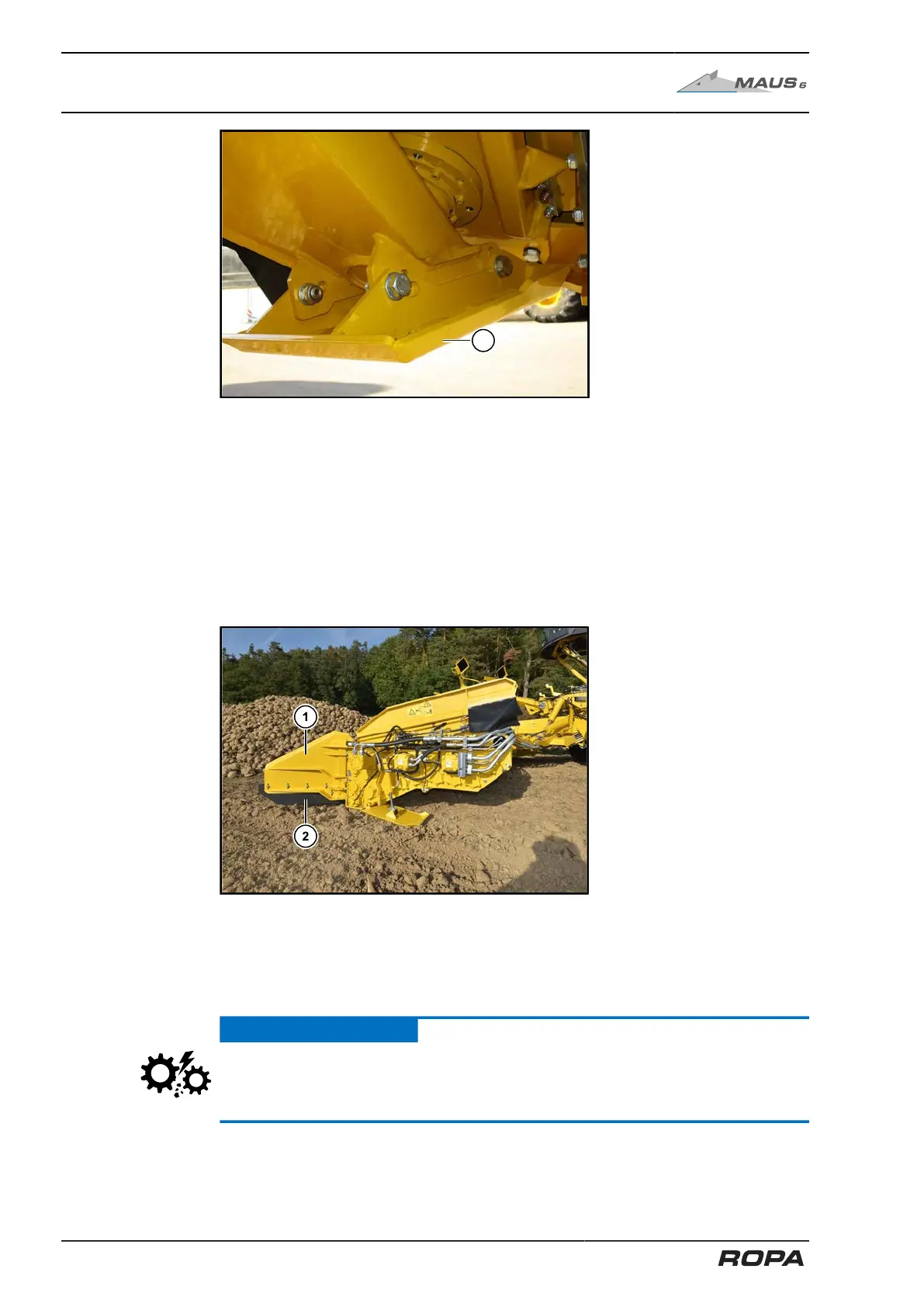 course of the clearing shield. Do not drive through obstacles with the clearing shields!