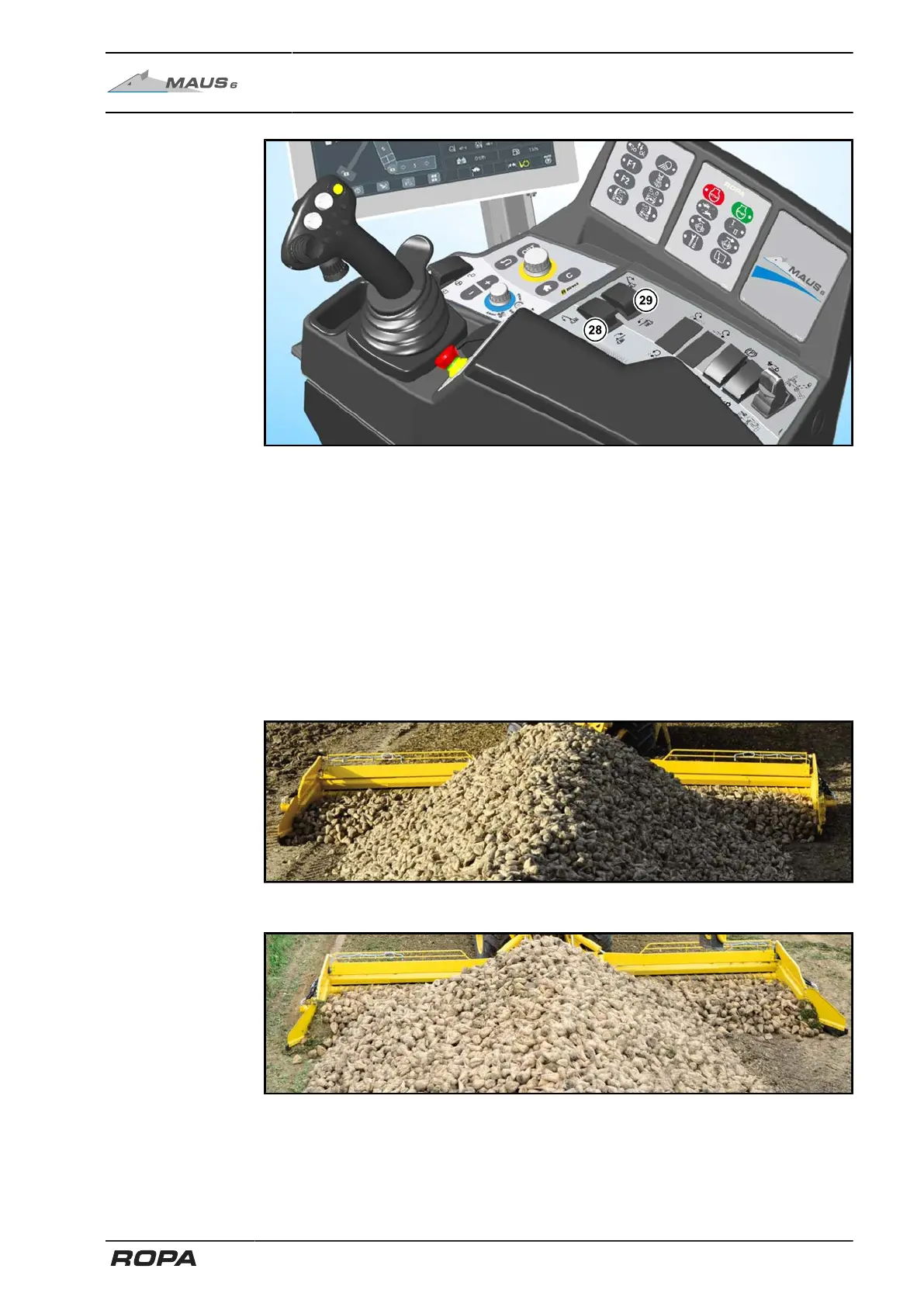 Incorrect setting of the clearing shields. Soil is shoved in the clearing shield area.