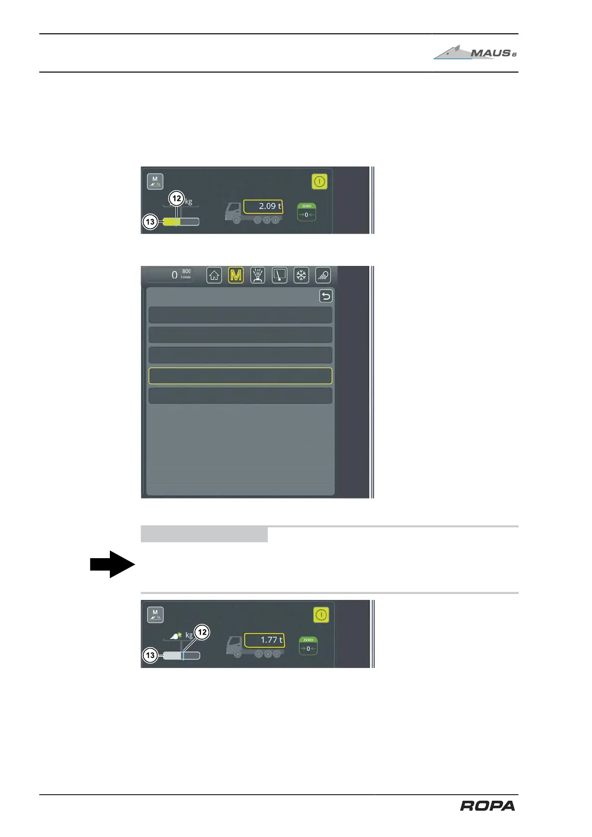 The indicator status bar (13) displays the load on the weighing cells. The amount limit