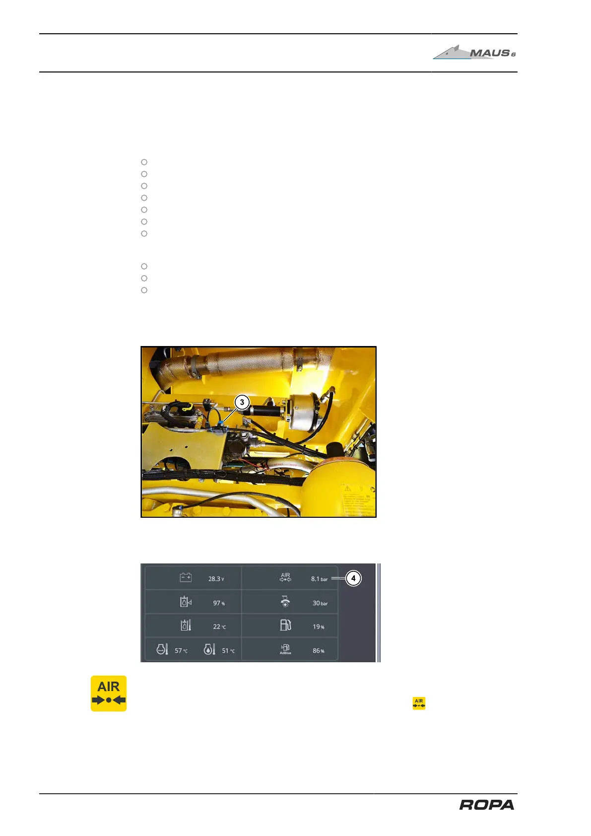 The exact reservoir pressure of the pneumatic system (4) is displayed on the R-Touch.