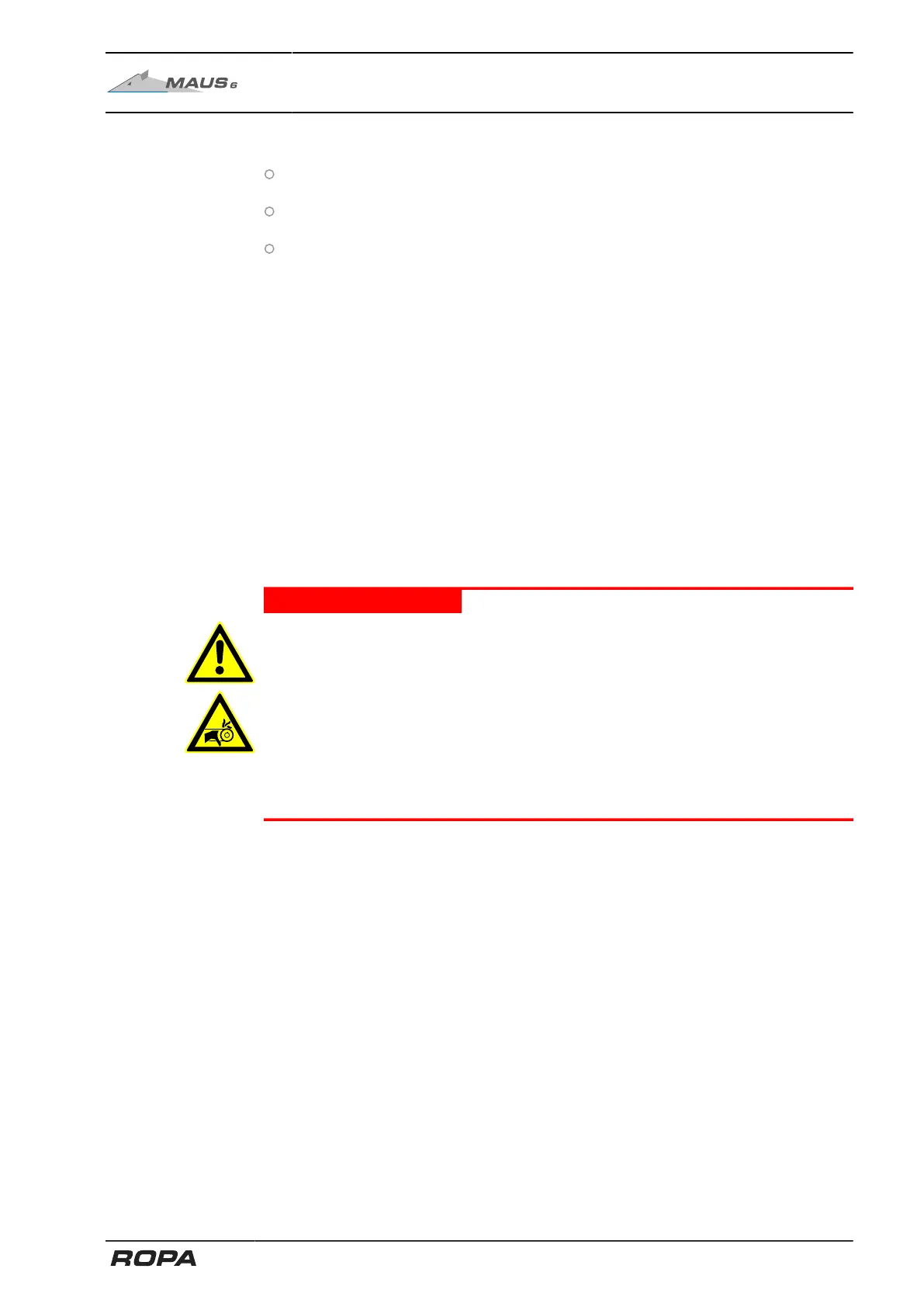During operation of the machine, there is mortal danger from uncovered rotat-