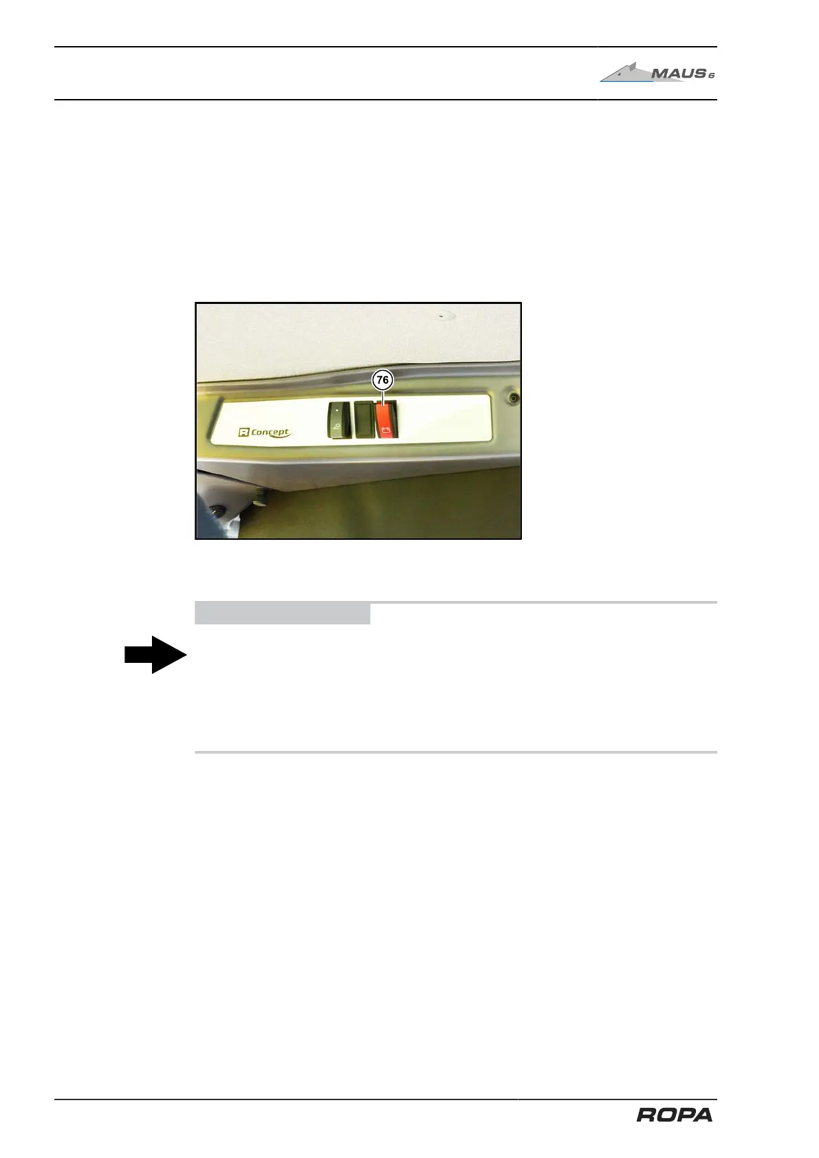 tion). If you forget to switch off the main battery switch (76) the battery disconnect