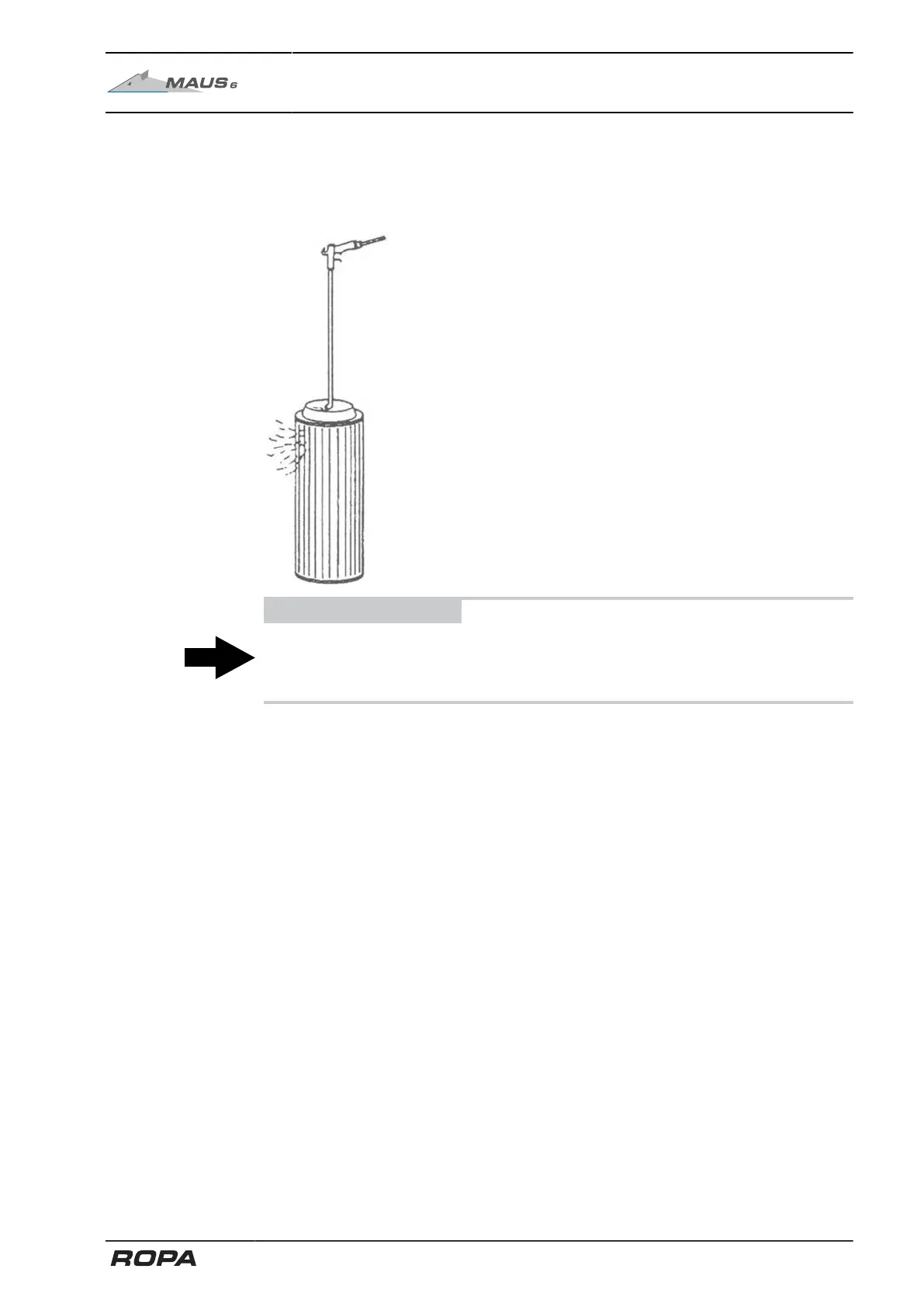 – Set the pressure reducer to max. 5 bar and blow out the filter cartridge with dry