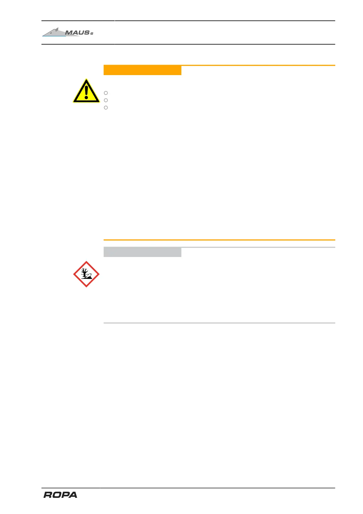 Hazard of damage to the environment by leaking fuel or oil!