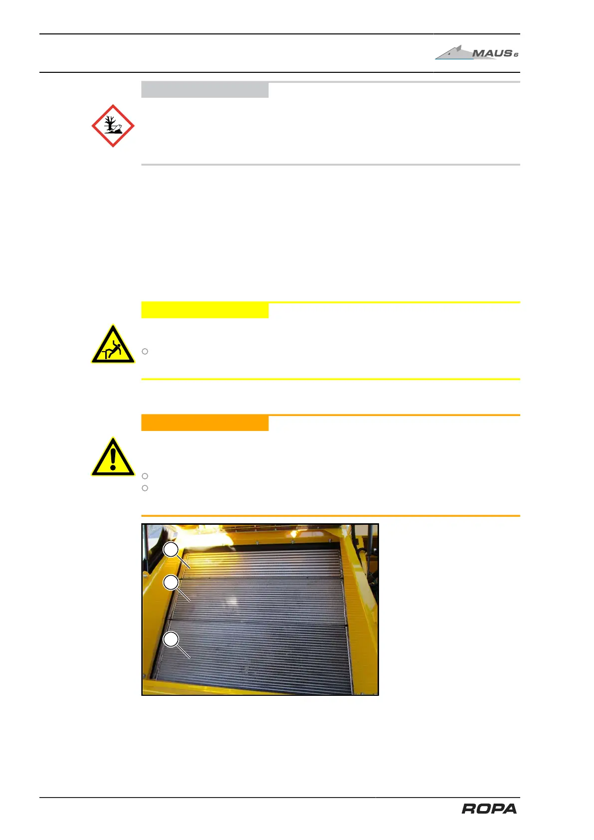 When cleaning the air intake grids or the coolers, always switch off the diesel engine