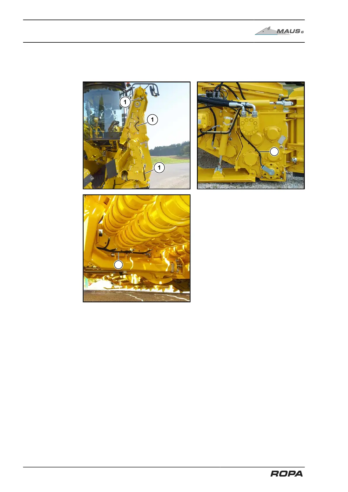 Check all lines (1) of the central lubrication system that lead to the rollers every day