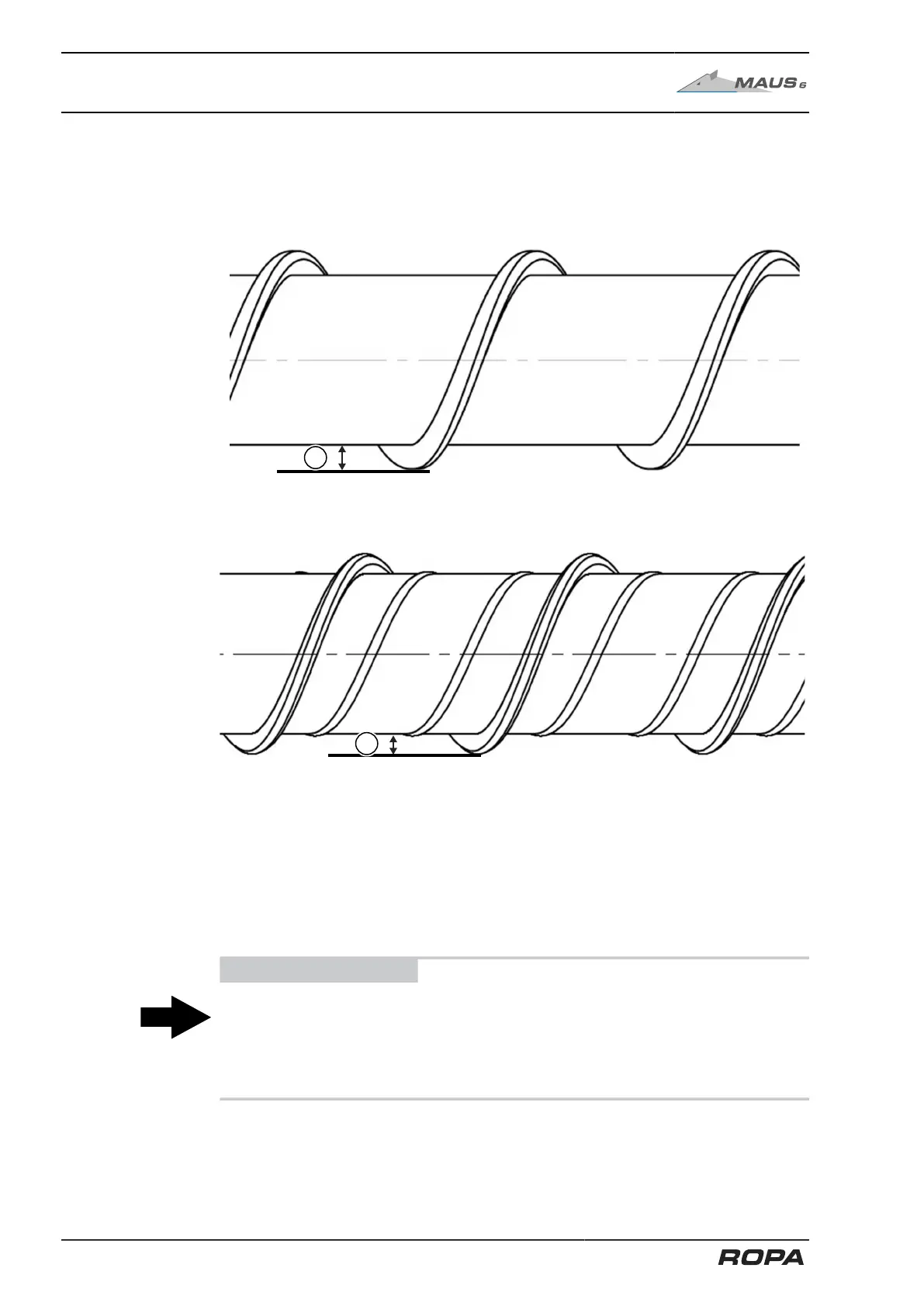 Note that the built-up spirals (1) on the conveyor rollers must never be higher than