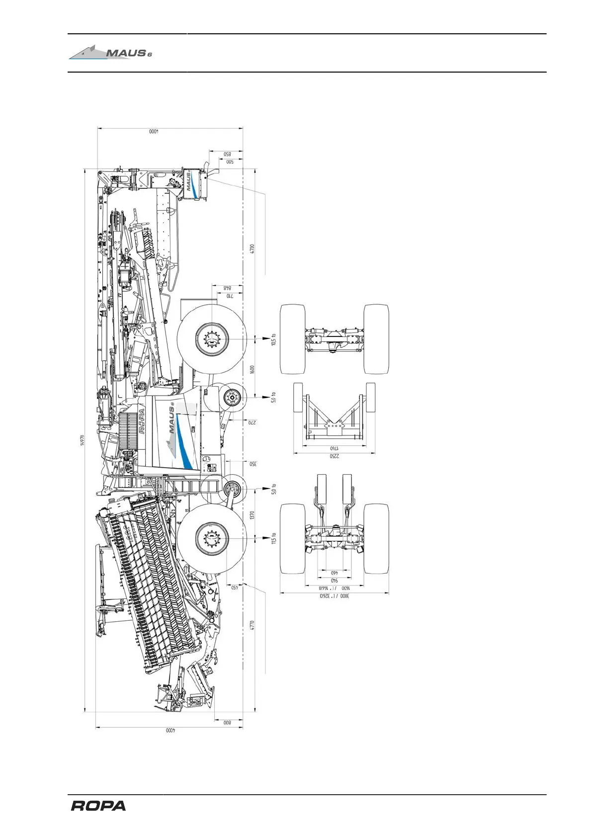 Note: for low-loader transport max. admis. Fuel amount in tank: 990 litre