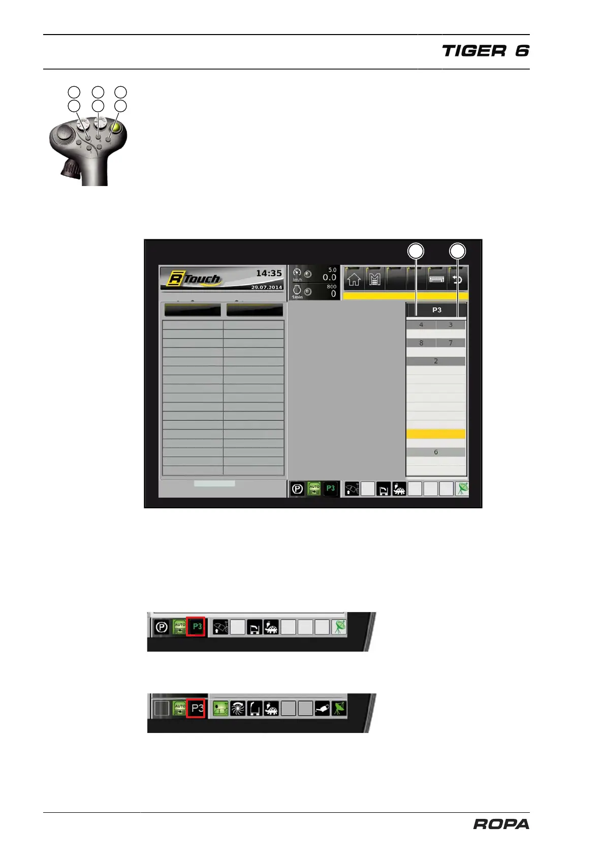 Touch, e.g. "P3", will be highlighted grey.