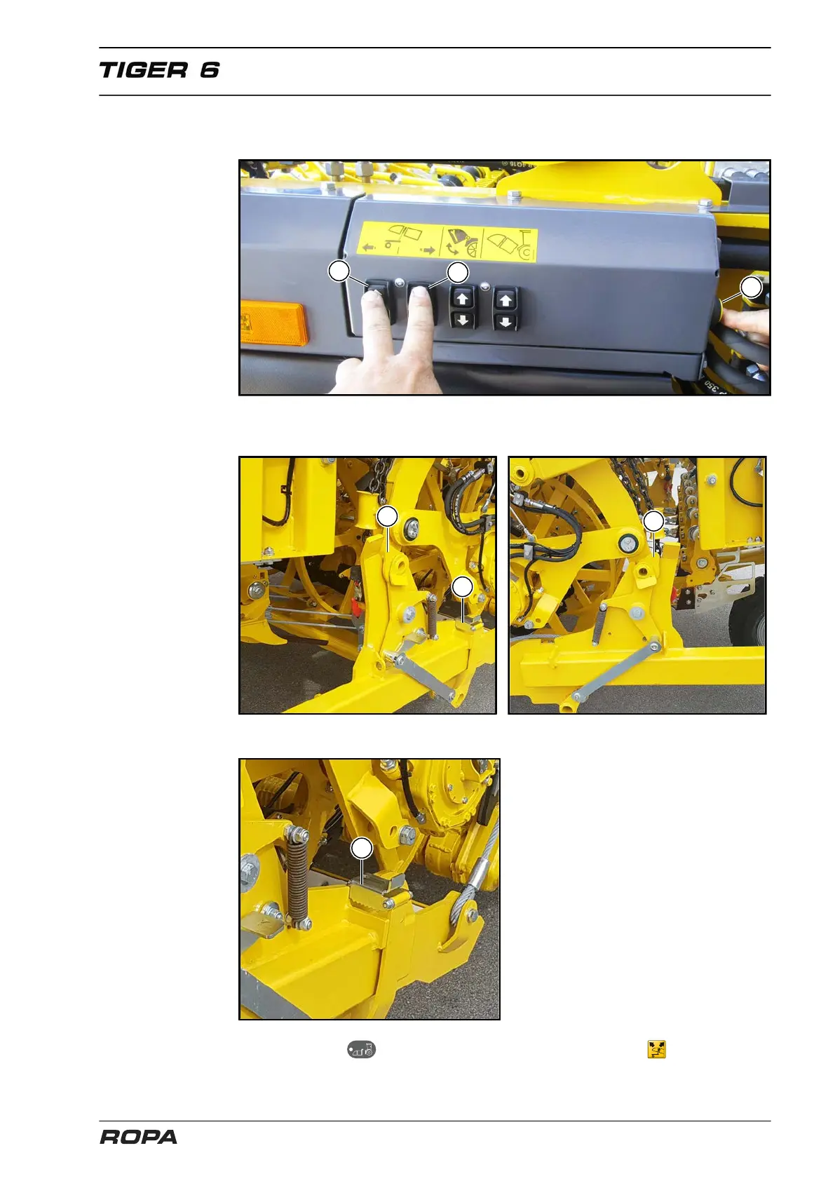 – Press and hold the deadman switch (12). Lift the additional chassis with the keys