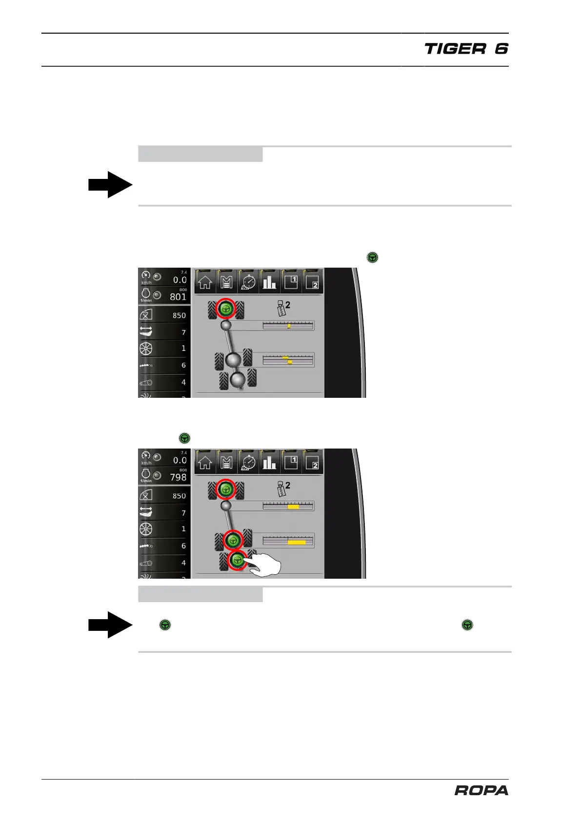 additionally the front axle autopilot has been activated by pressing on the footswitch