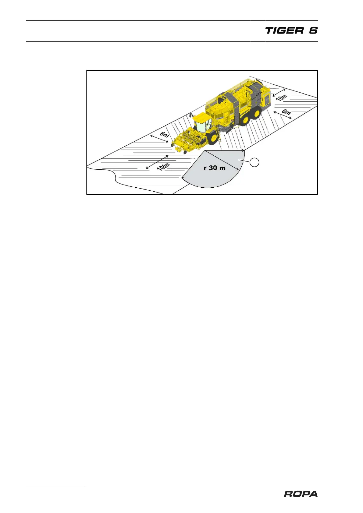 machine and 100 metres in front of the machine is deemed to be the hazard zone.