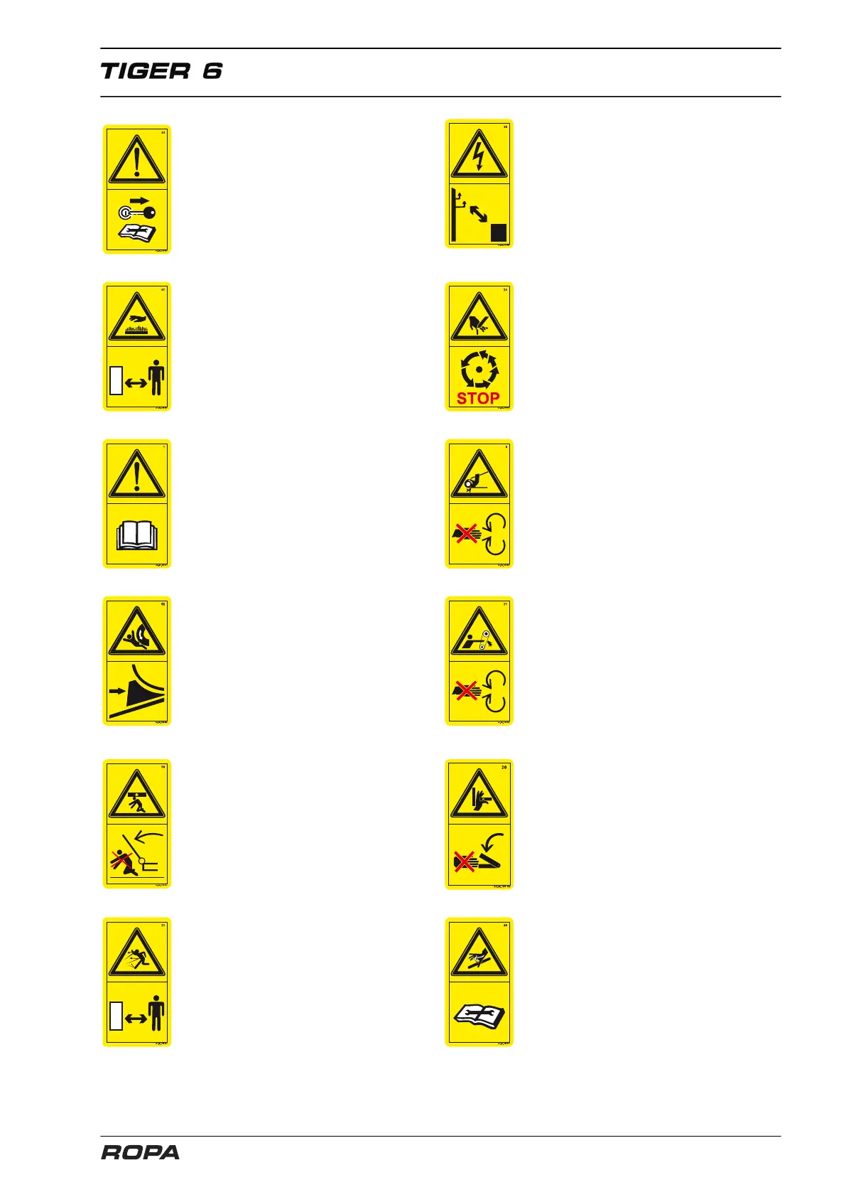 Safety stickers on the machine