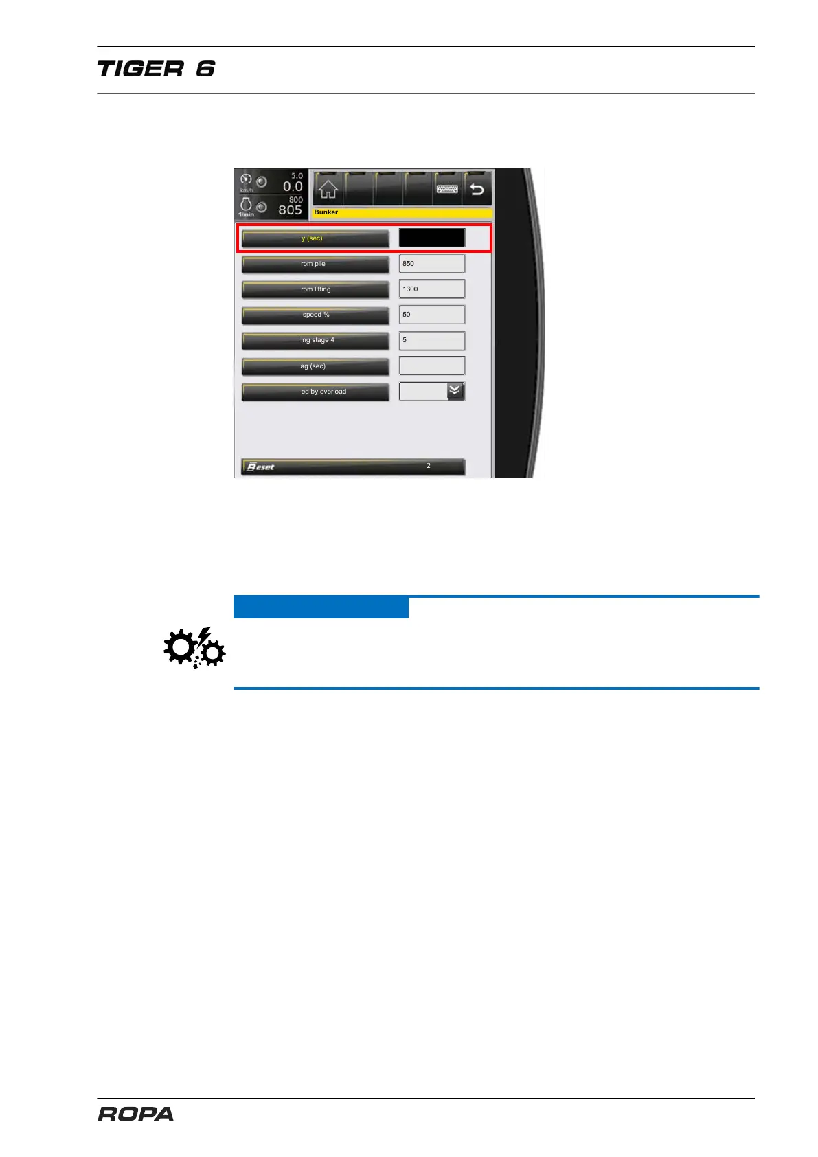 set in the menu "Main settings", submenu "Bunker", line "Time bunker auger".