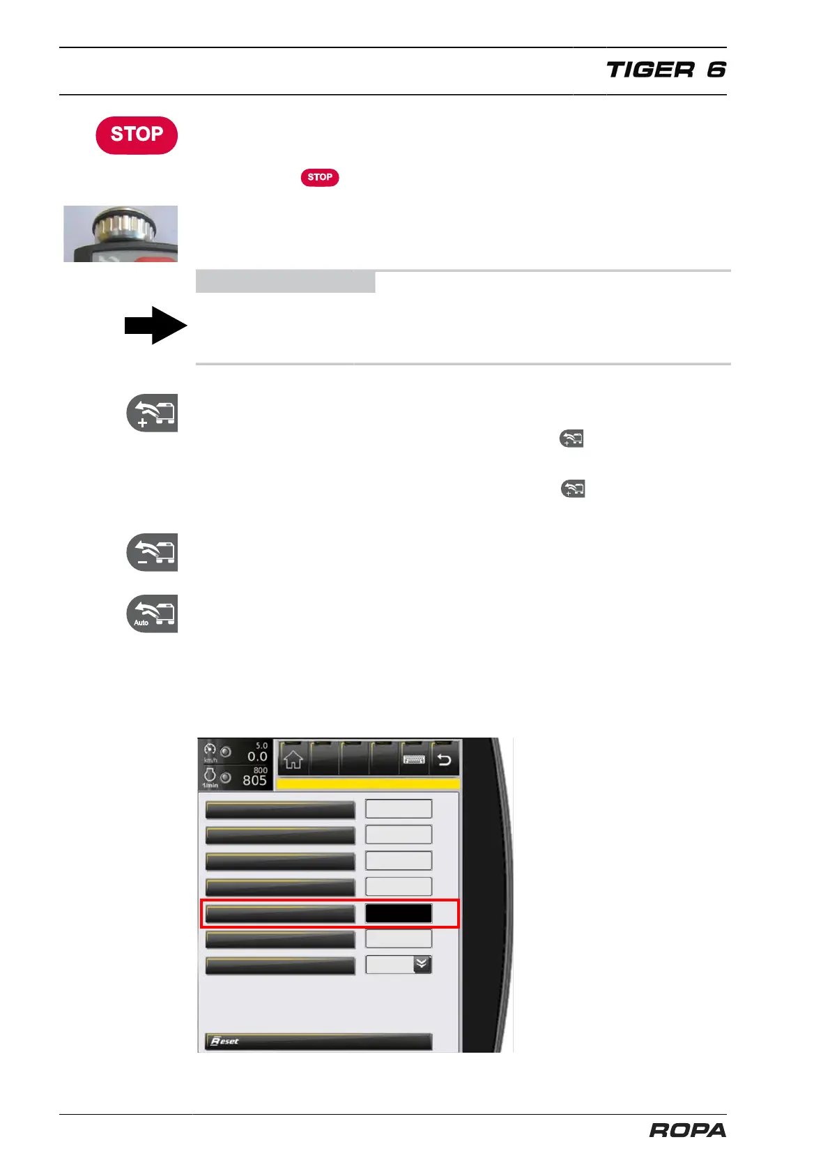 Pressing this key stops unloading of the bunker and switches unload conveyor and