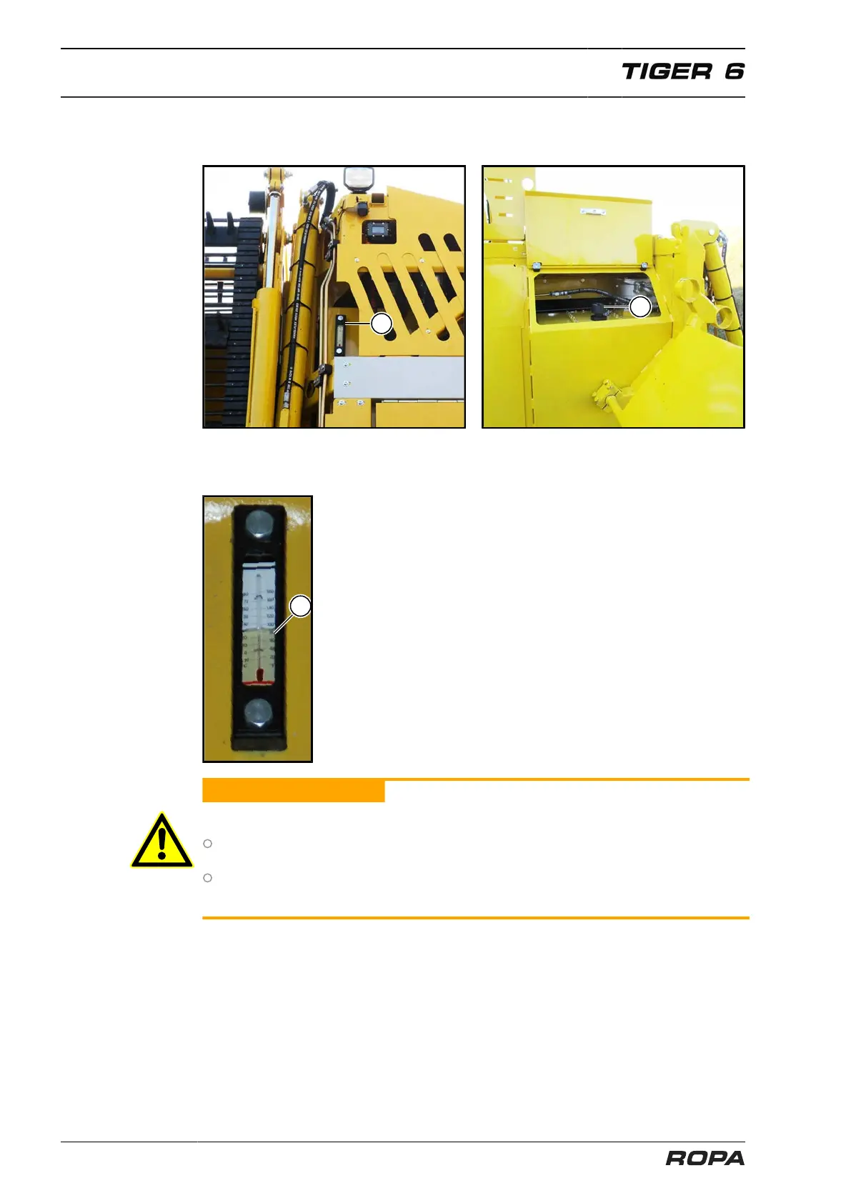 at the inspection glass (1) (on the left side of the hydraulic oil tank). The hydraulic