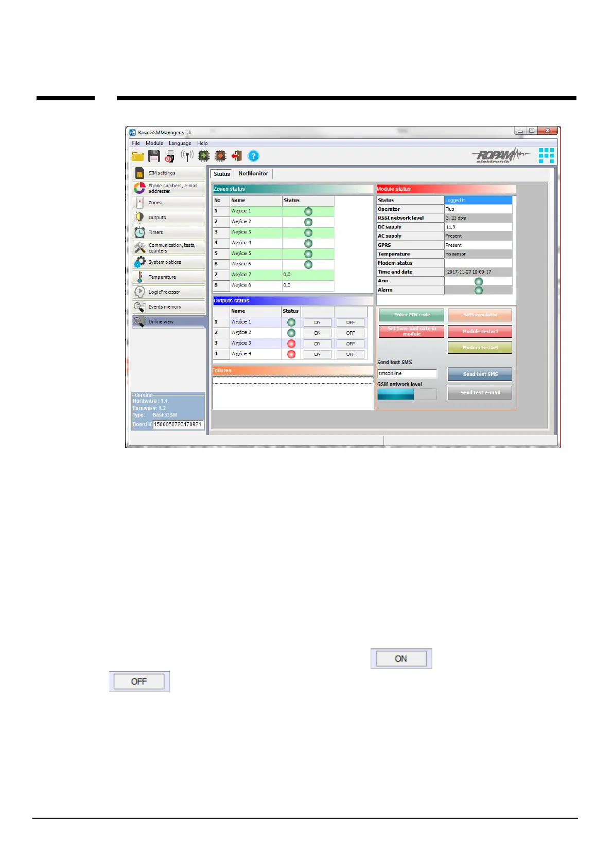 - In the ON-LINE mode, the module performs its standard functions, eg sends SMS messages