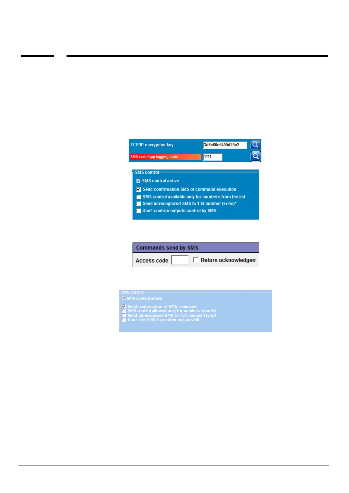 SMS password: enter the user code of the system (same as BasicGSM Manager - SMS code /