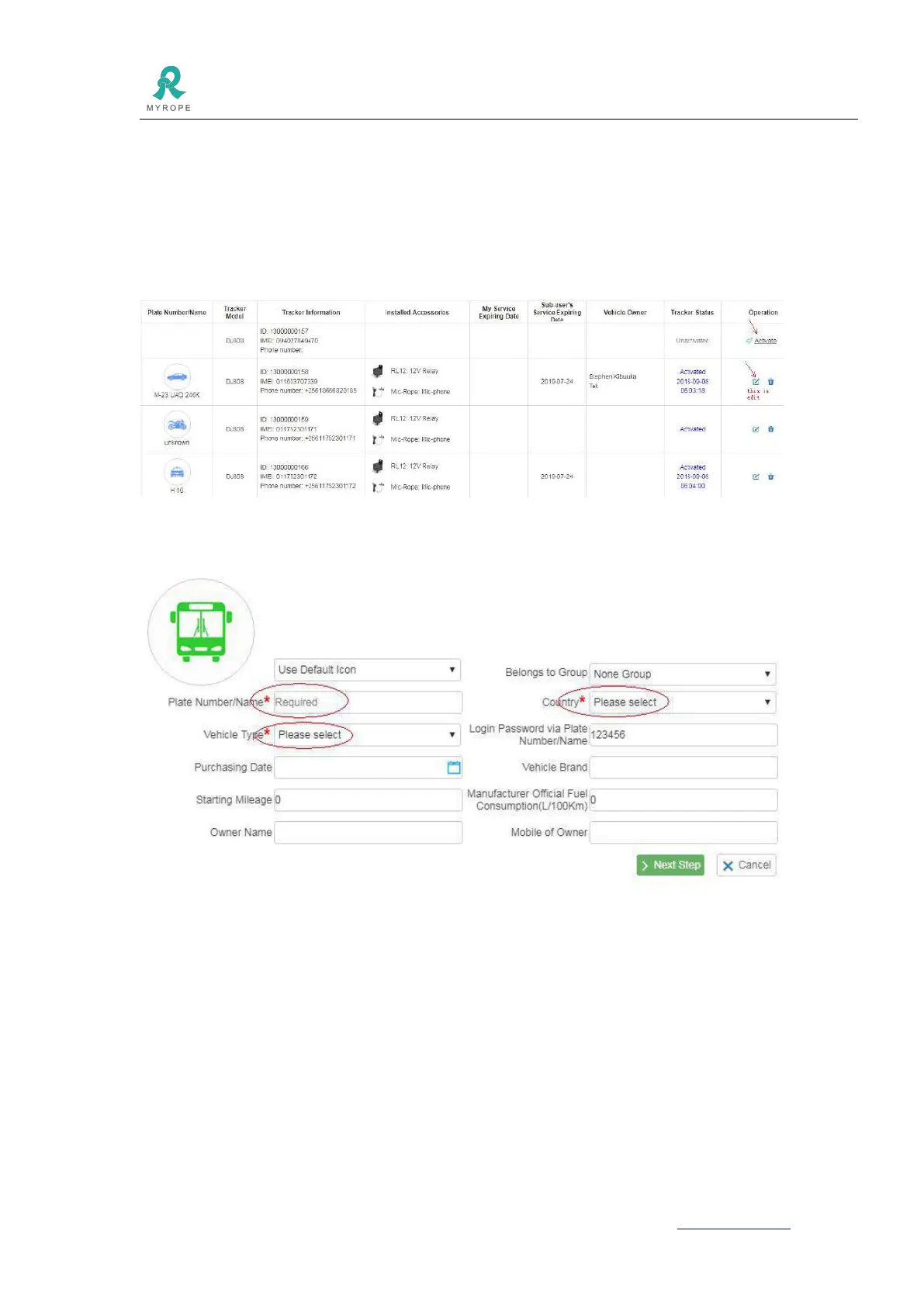 4.3 Click Vehicle Tracker List and you will see all your vehicles are listed there. Please note, to add more